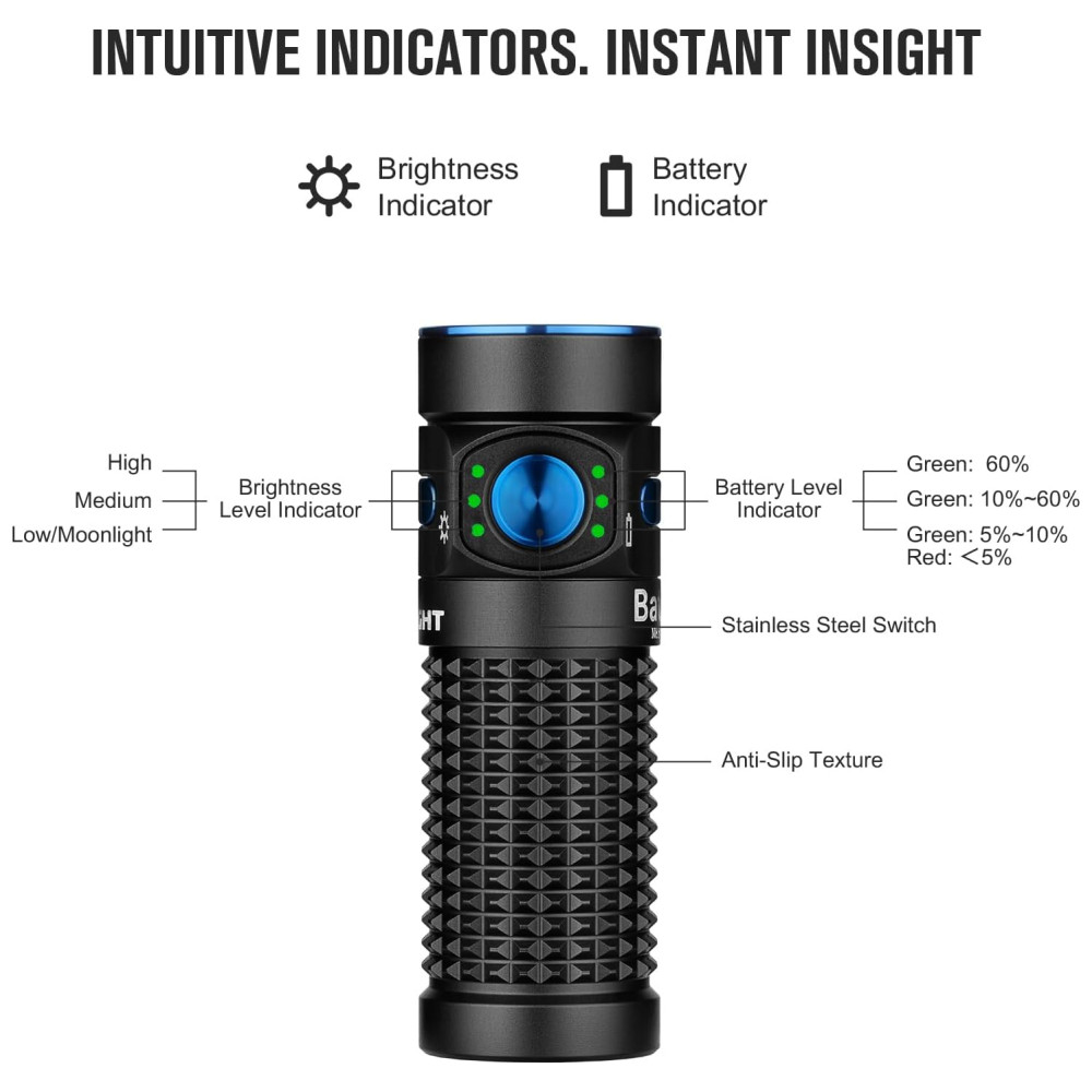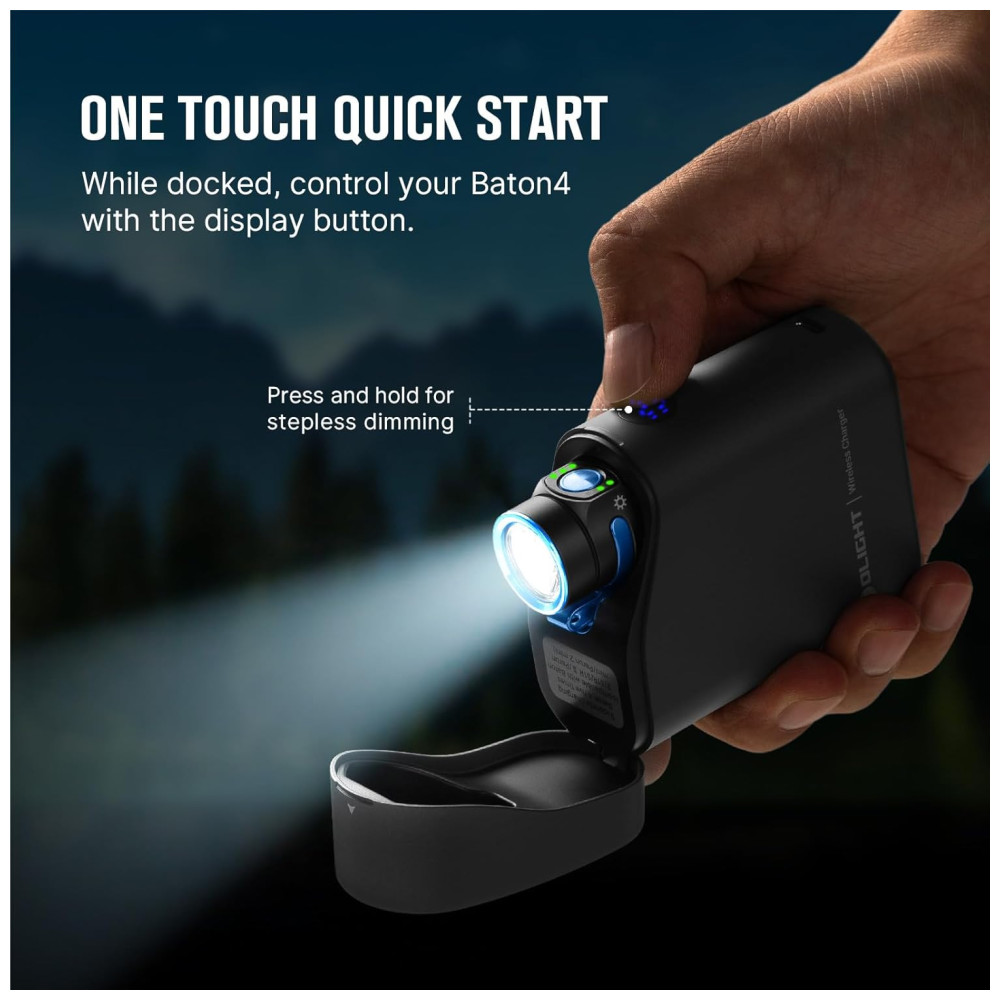 A lanterna OLIGHT Baton4 possui uma potência máxima de 1.300 lumens e alcance de luz de 170 metros. Com um ímã embutido e um clipe resistente de dois sentidos que permite fixá-la em superfícies metálicas ou prender ao cinto. Possui alça de segurança no estojo de carregamento para evitar quedas acidentais. Este poderoso estojo de carregamento oferece até 190 dias de tempo de execução e é totalmente compatível com Baton3, além de permitir o armazenamento e carregamento dos modelos S1R II, Perun Mini e Perun 2 Mini. Com uma porta USBC universal, pode ser facilmente carregada ou usada para carregar seu dispositivo móvel. A lanterna portátil possui um indicador microperfurado que mostra a intensidade da luz e a vida útil da bateria. Botão de exibição digital no estojo para indicação precisa do nível da bateria e ajuste de brilho. Com 6 modos de luz, você pode escolher entre Modo1 1300-300 lumens, Modo2 600-60 lumens, Modo3 60 lumens, Modo4 12 lumens, Modo5 0,5 lumens ou o estrobo a 13Hz, 1300 lumens, conforme sua preferência.