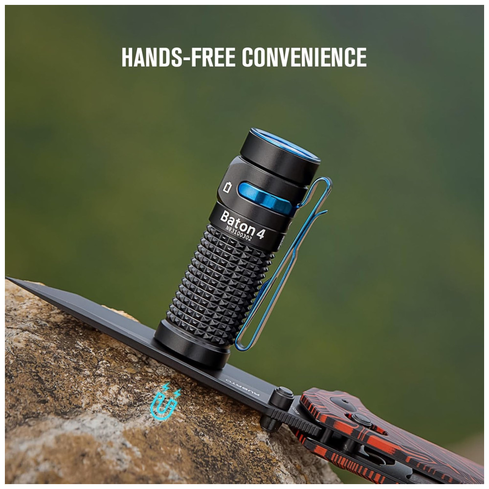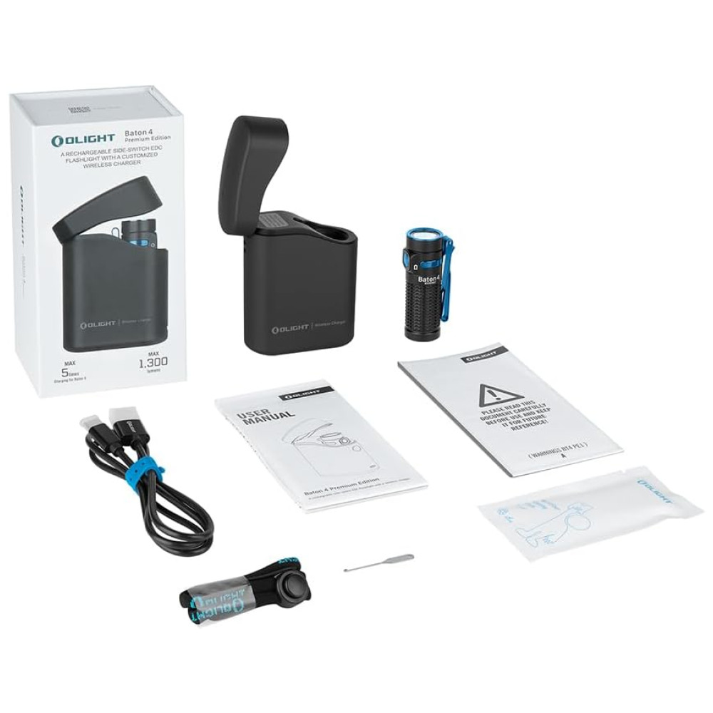 Lanterna OLIGHT Baton4 Edição Premium EDC 1300 Lumens com Estojo de Carregamento Tipo C Alimentada por Bateria Recarregável Pequena e Brilhante IPX8
