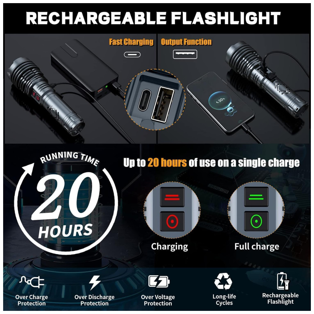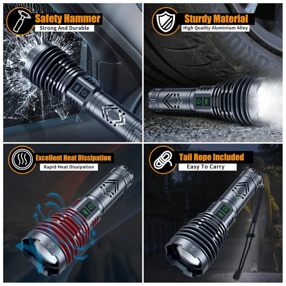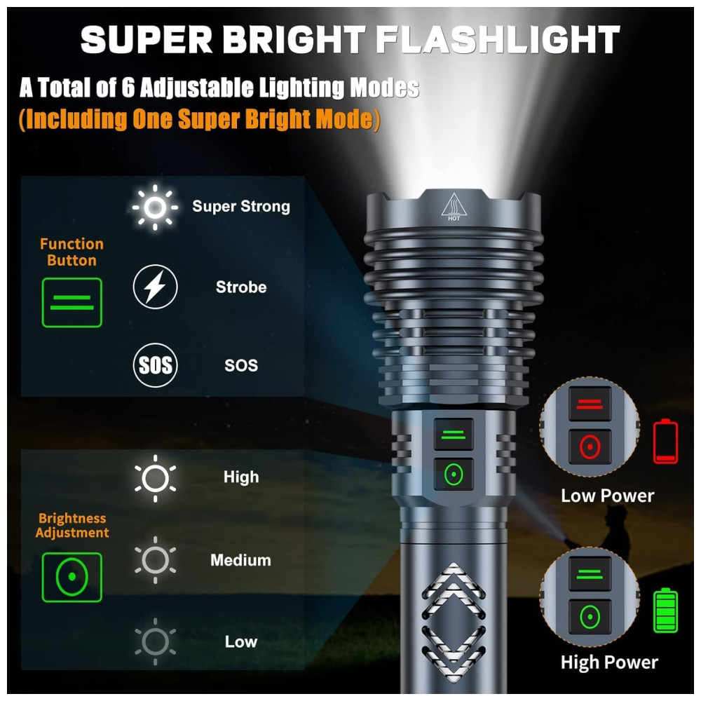 Características Especiais: Lanterna Mais Brilhante 5500 Lumens, Alcance 2000 Pés Maior que Lanternas Comuns,