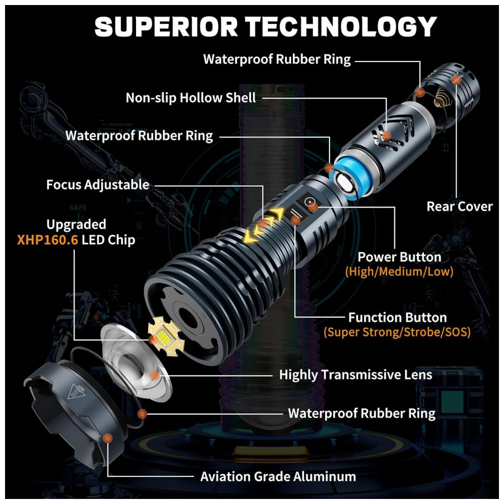Special Feature: Lanterna Mais Brilhante 5500 Lumens, Alcance 2000 Pés Maior que Lanternas Comuns,