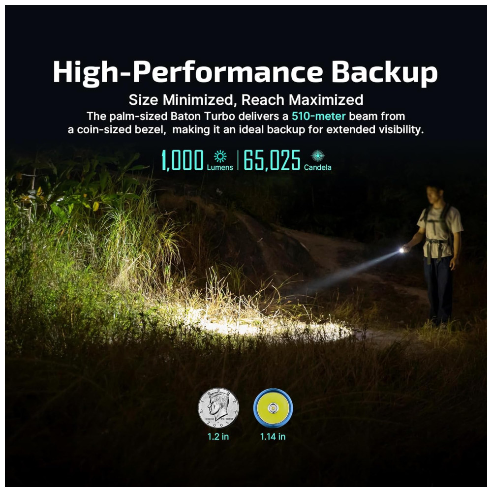 Lanterna Recarregável OLIGHT BatonTurbo EDC 1000 Lumens Compacta e Brilhante com Alcance de 510 Metros Ideal para Busca Resgate e Emergências