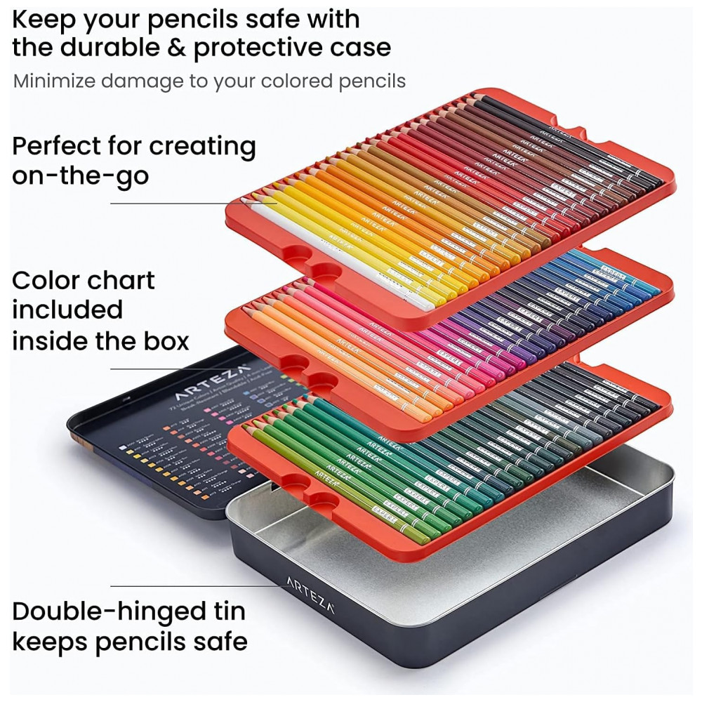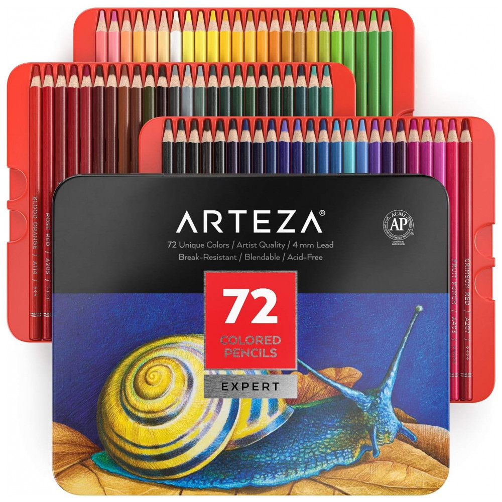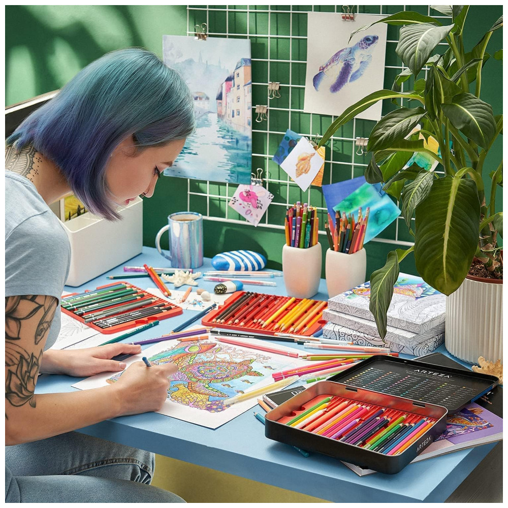 Lápis de Cor Arteza Conjunto com 72 Cores e Livro de Colorir Núcleos de Cera Macia Material de Arte para Desenho Esboço Sombreamento
