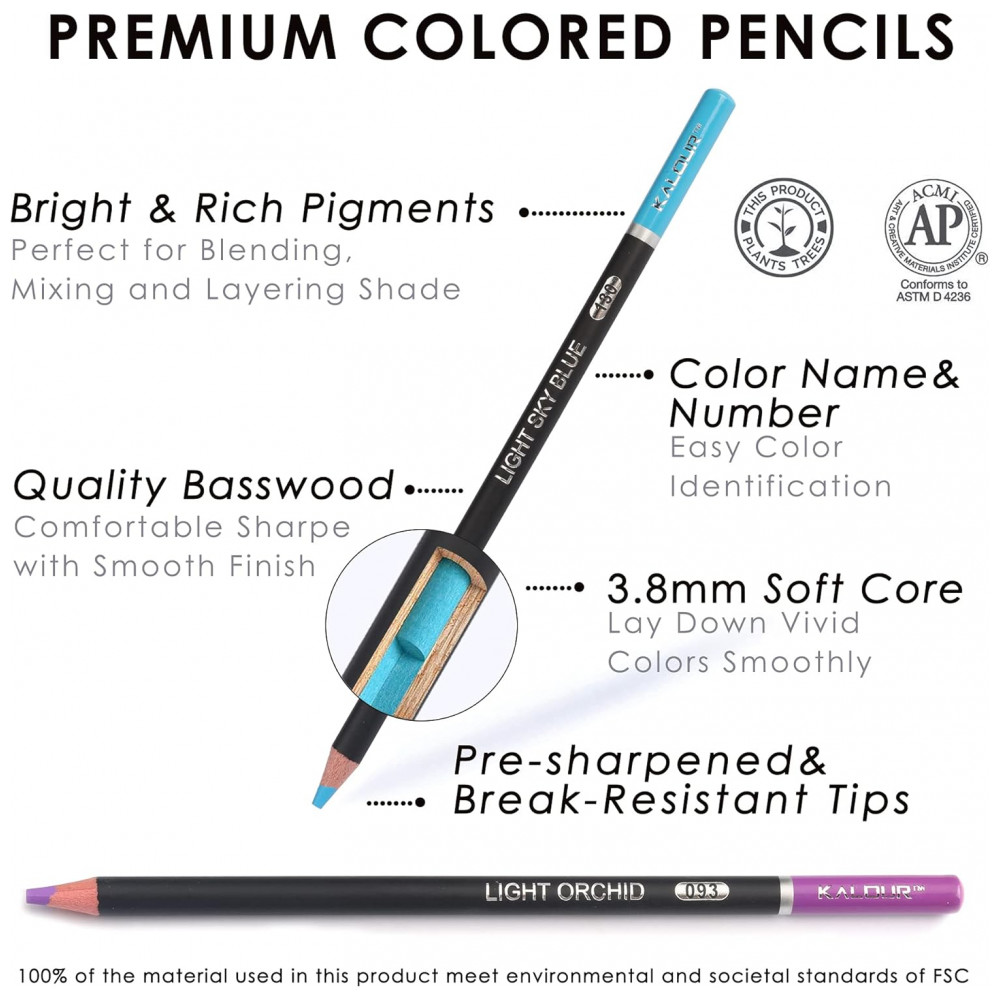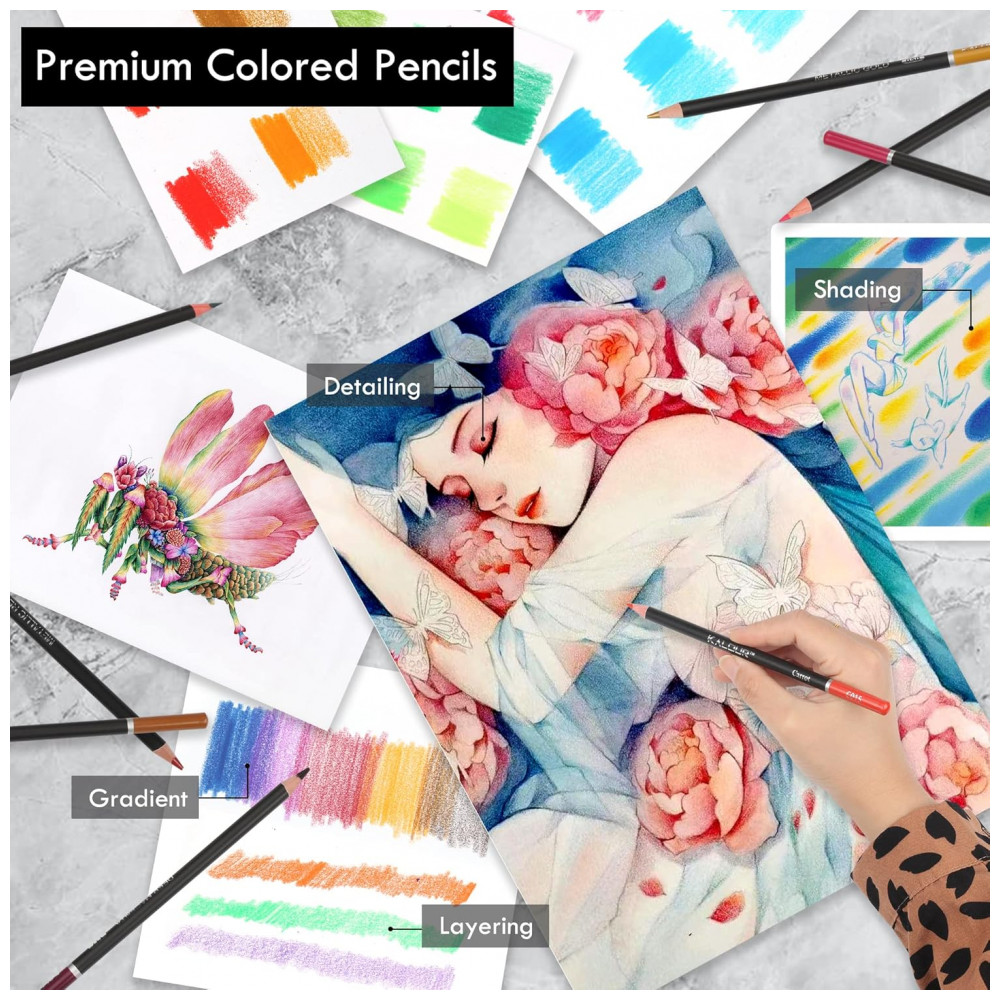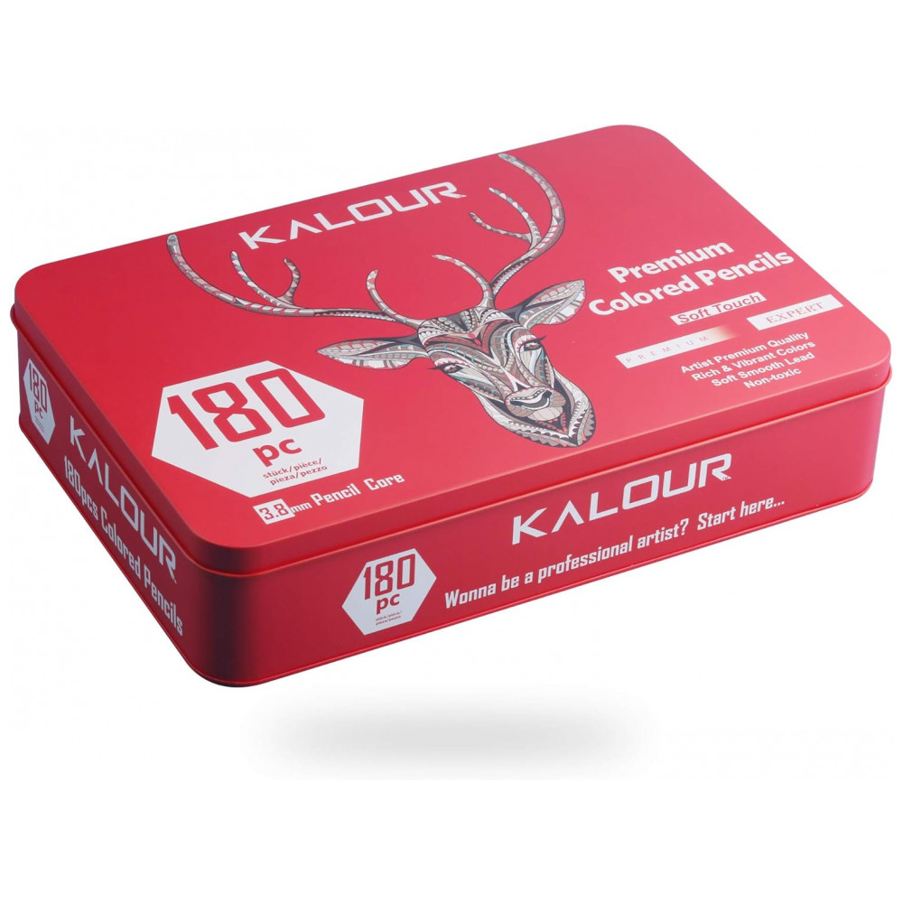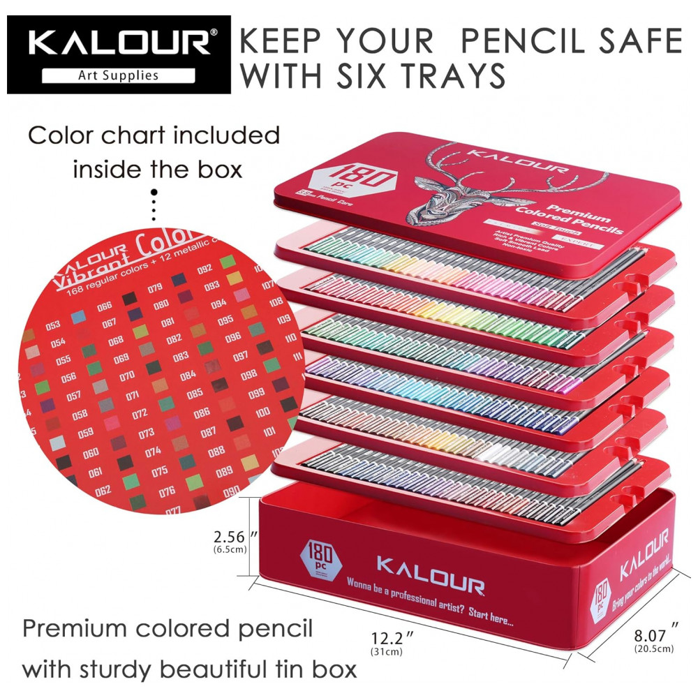 Lápis de Cor KALOUR 180 para Artistas Cores Vívidas Núcleo Macio à Base de Óleo Ideal para Colorir Desenhar Esboçar Sombrear Misturar Estojo de Cores