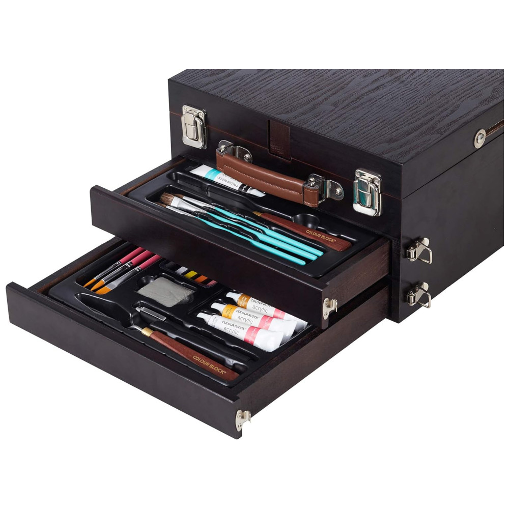 BLOCO DE CORES 152 cavalete de madeira Pintura e Desenho Arte Mídia mista Art Set Acrílico e Aquarela Desenho, lápis de cor e metálicos e ferramentas. Conjunto de arte profissional para adultos e todos os artistas