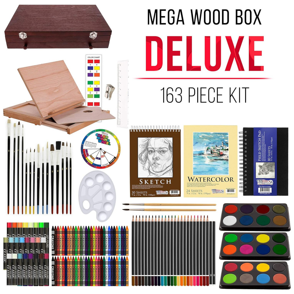 Lápis de Cor Profissional 163Pcs Cavalete pasteis Aquarela US ART SUPPLY 142 PPBW 511