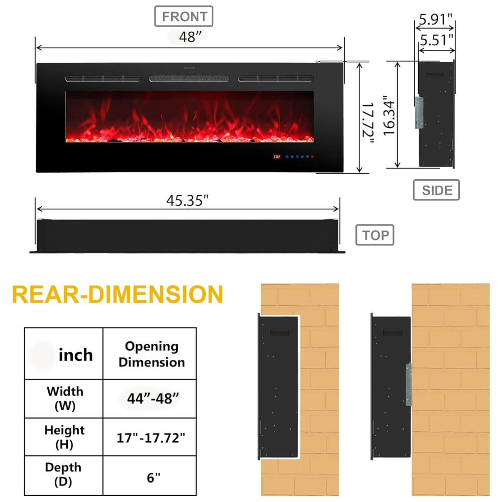 Lareira Elétrica 12192 Centímetros Embutida na Parede Controle Remoto 13 Cores de Chamas Timer 9 HorasRodalflame.