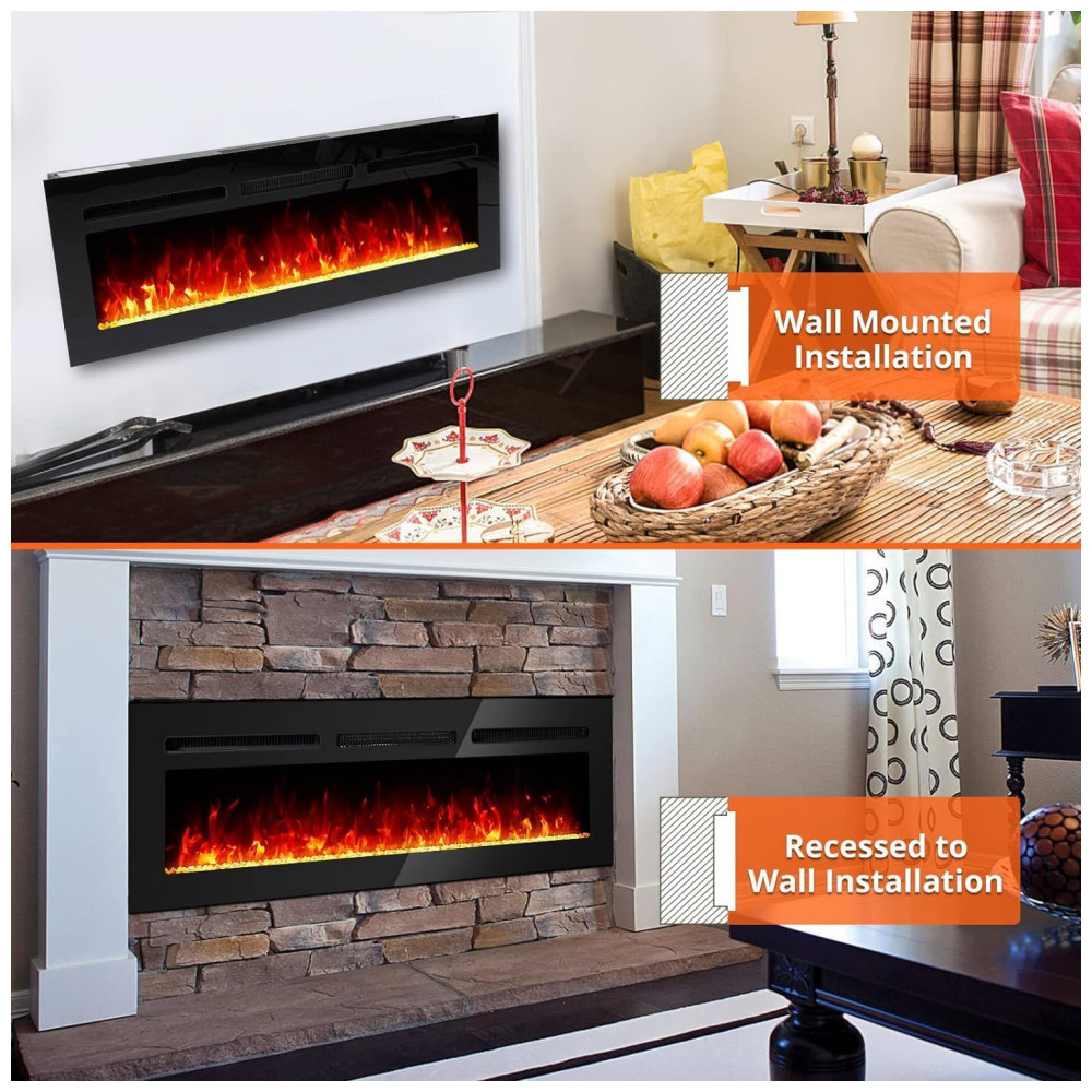 Lareira Elétrica 127 cm Recessada e Montada na Parede Aquecedor 1500W/750W Termostato (15-37°C) Controle Remoto e Touch 12 Cores. Fectiontool