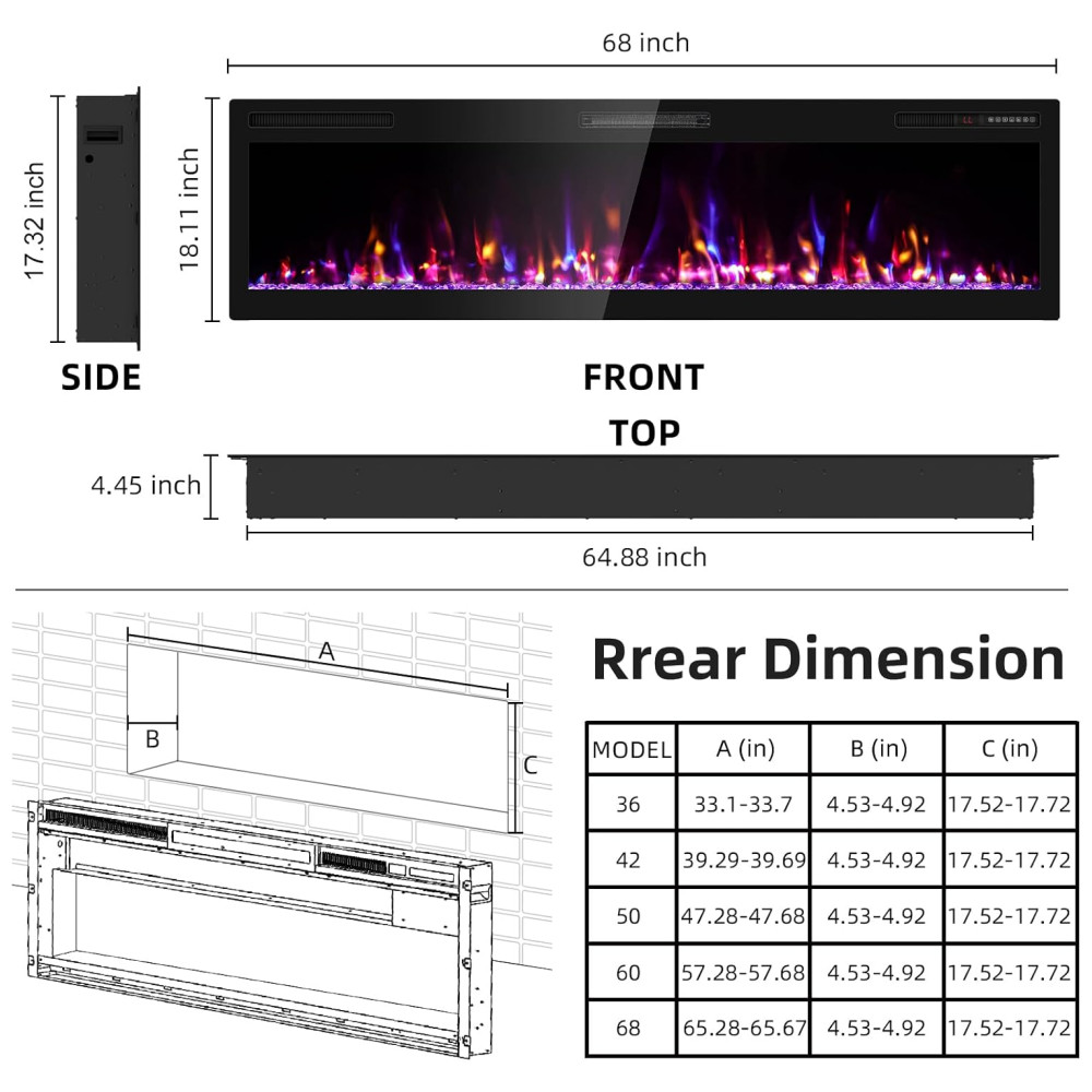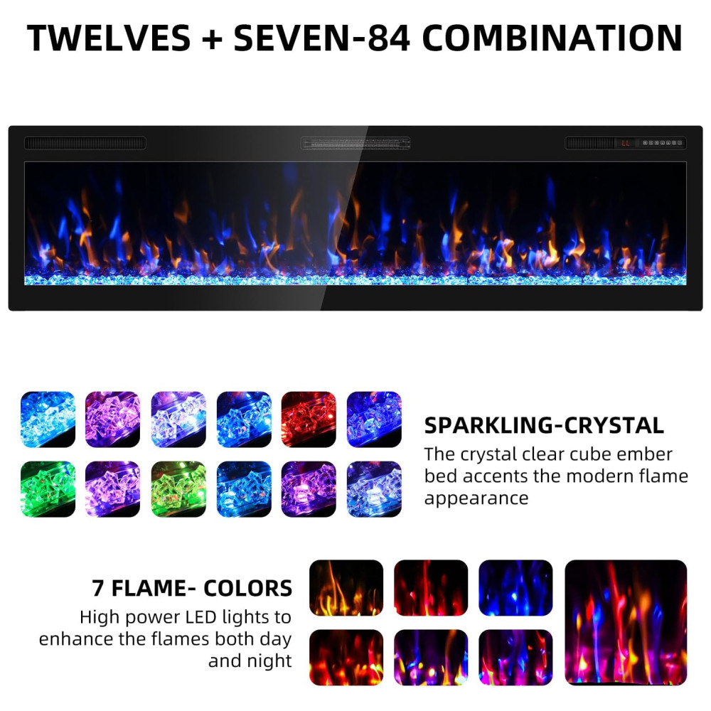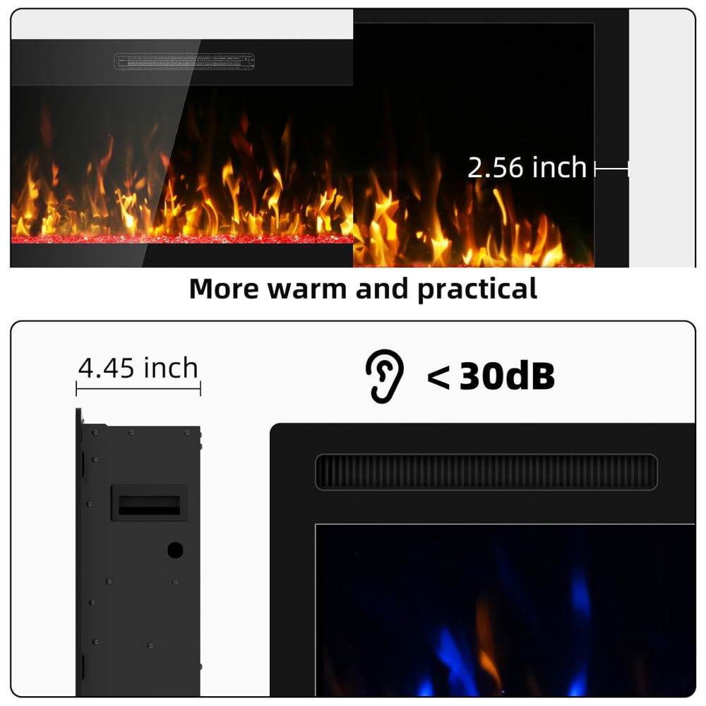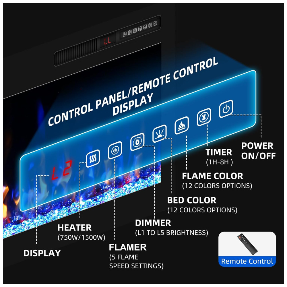 Esta lareira elétrica LED personalizável oferece uma ampla variedade de opções para criar o ambiente perfeito em sua casa. Com o controle remoto fornecido, você pode escolher entre 7 cores de chama, 12 cores de leito de chama, 5 modos de velocidade de chama e 5 níveis de brilho de chama. Além disso, esta lareira tem apenas 6,50 cm de largura de moldura em branco e 11,43 cm de espessura, tornando a 20 mais fina do que outras lareiras e fácil de instalar e usar. Você pode escolher a temperatura desejada entre dois modos 750 W ou 1500 W. Esta lareira pode ser embutida na parede, montada na parede ou usada como uma unidade autônoma. Aprovada pela ETL, esta lareira elétrica atende aos mais altos padrões de segurança e qualidade, possui um recurso de eliminação automática de calor integrado que evita o superaquecimento e mantém o ar úmido e aconchegante. A tecnologia HD 3D melhora a clareza, o brilho e a cor da chama, proporcionando uma experiência visual realista e atraente. Esta lareira elétrica é ideal para uso em casa, comercial e de escritório.
