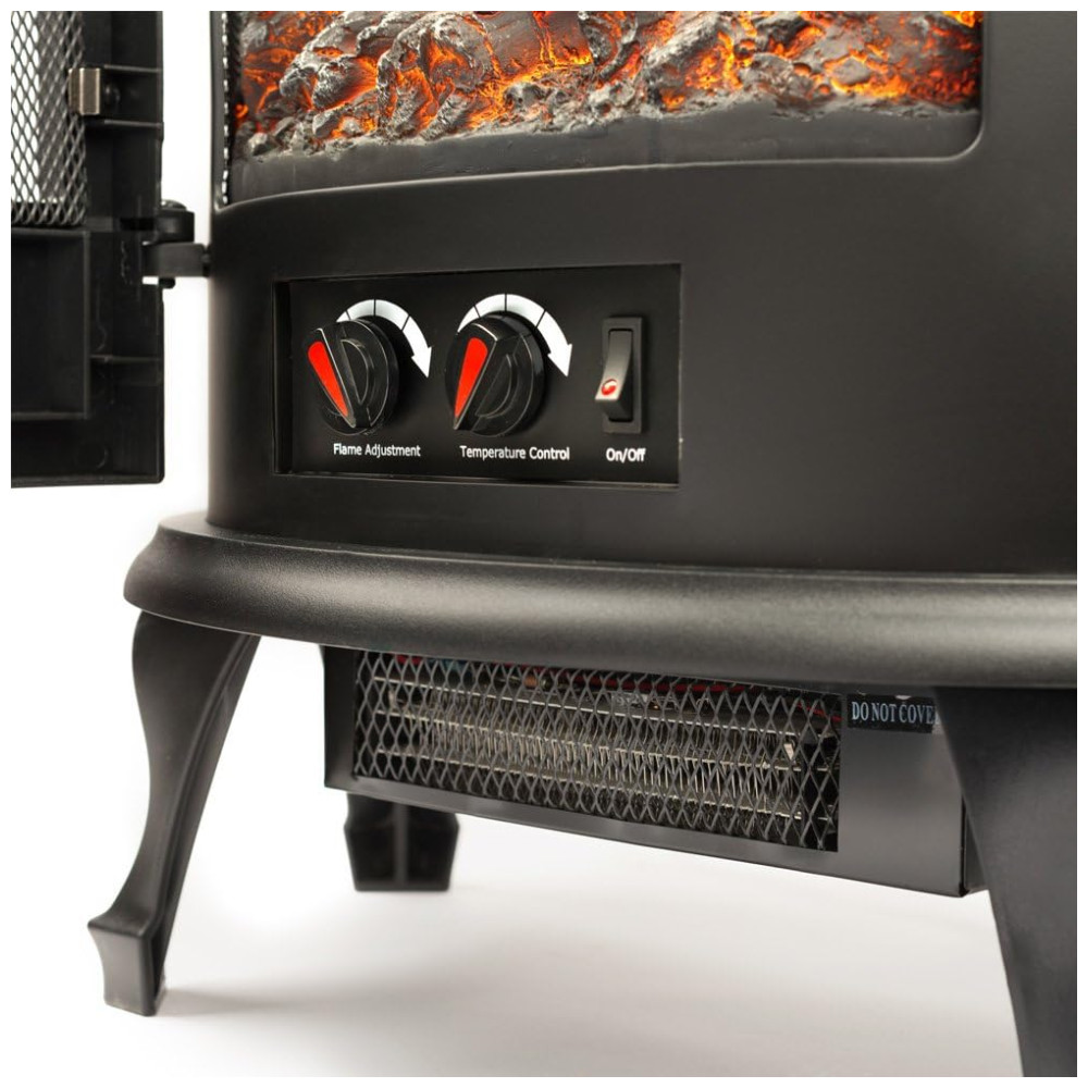 Design: O design clássico destaca o efeito realista de queima de lenha e as chamas dançantes. Esta lareira é leve e permanece fria ao toque, facilitando o transporte de um cômodo para outro. Uma solução de aquecimento elegante para qualquer espaço. Perfeita para seu quarto de hóspedes, porão, garagem, apartamento, escritório ou motorhome/RV. Segura para todos os tipos de piso.