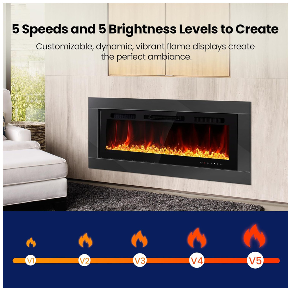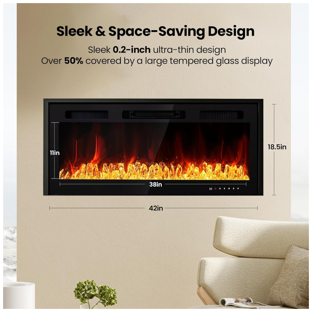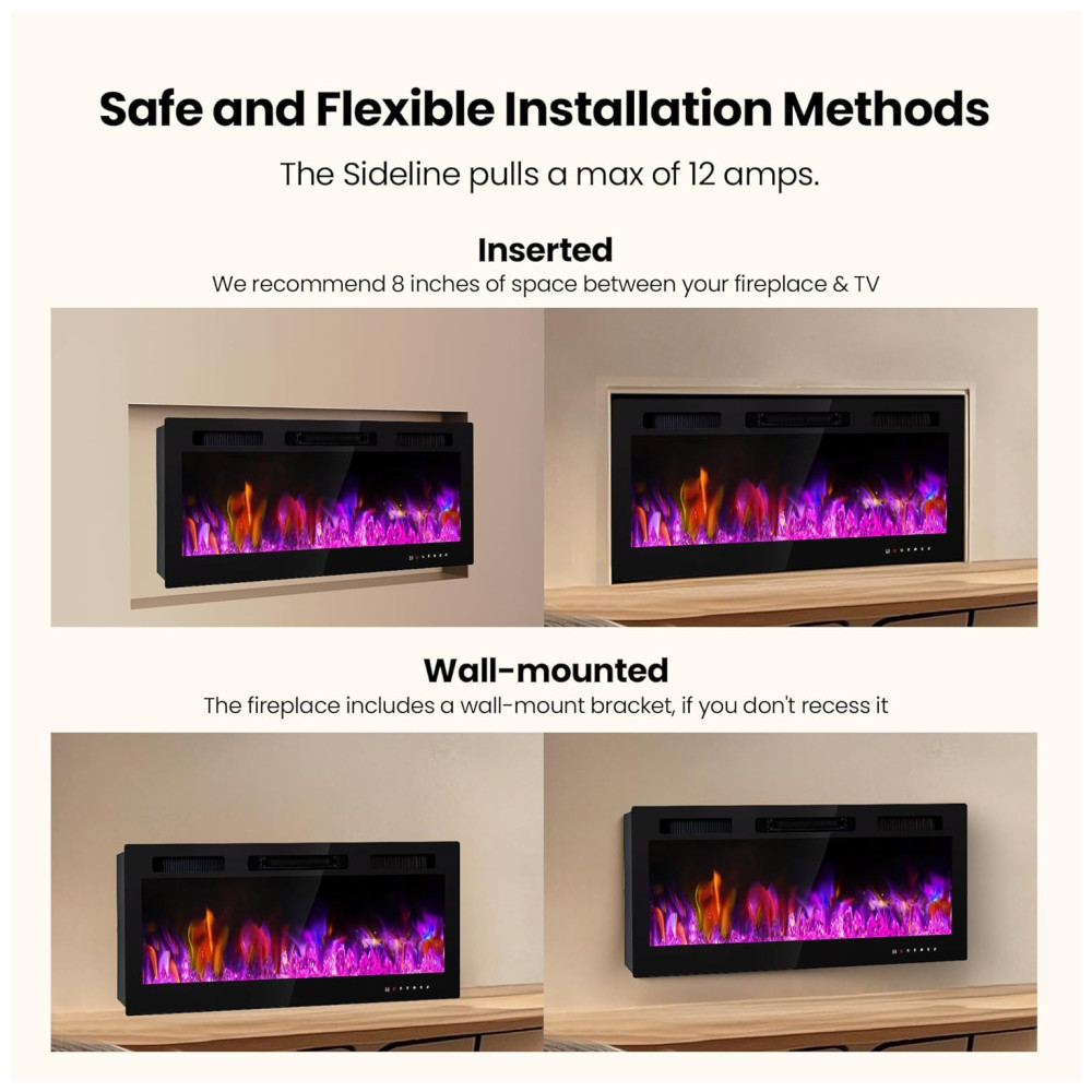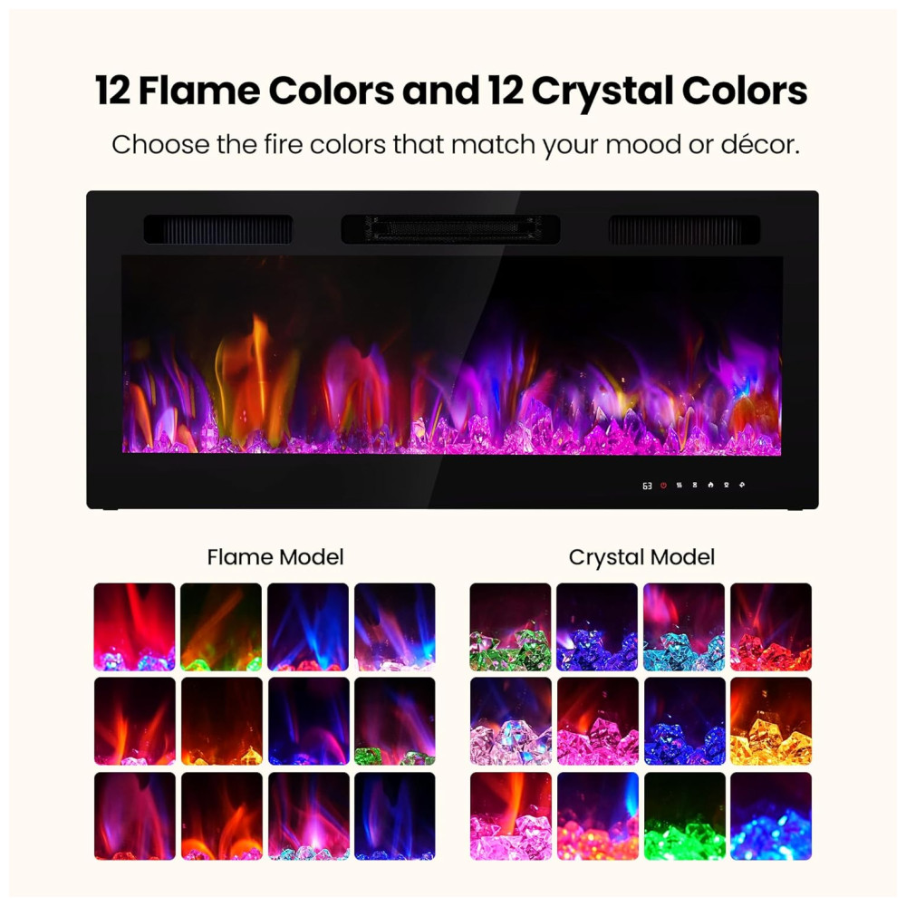 A lareira RealSmart é um produto versátil, oferecendo três opções de instalação totalmente embutido, parcialmente embutido e montado na parede. Com efeitos de chama realistas, apresentando 12 cores de chama dinâmicas, 12 cores de base sólidas, 5 níveis de velocidade e 5 níveis de brilho, ela cria a vibração perfeita para qualquer momento. Com um design moderno e elegante, o aquecedor possui um perfil fino de apenas 0,51 cm, uma alta proporção de tela de 56 e um painel frontal de vidro temperado durável, tornando o uma peça decorativa elegante. Possui controles inteligentes, com ajuste fácil da temperatura, chama, brilho e configurações de temporizador 112 horas com controle remoto. O aquecedor de lareira embutido pode aquecer áreas de até 37,16 m2, fornecendo calor consistente para sua sala de estar, quarto e outros cômodos grandes. É seguro e confortável, com recursos de segurança integrados, como desligamento automático e proteção contra superaquecimento. O pacote inclui 1 lareira elétrica, 1 pacote de pedras de cristal, 1 manual de instalação e acessórios de hardware.
