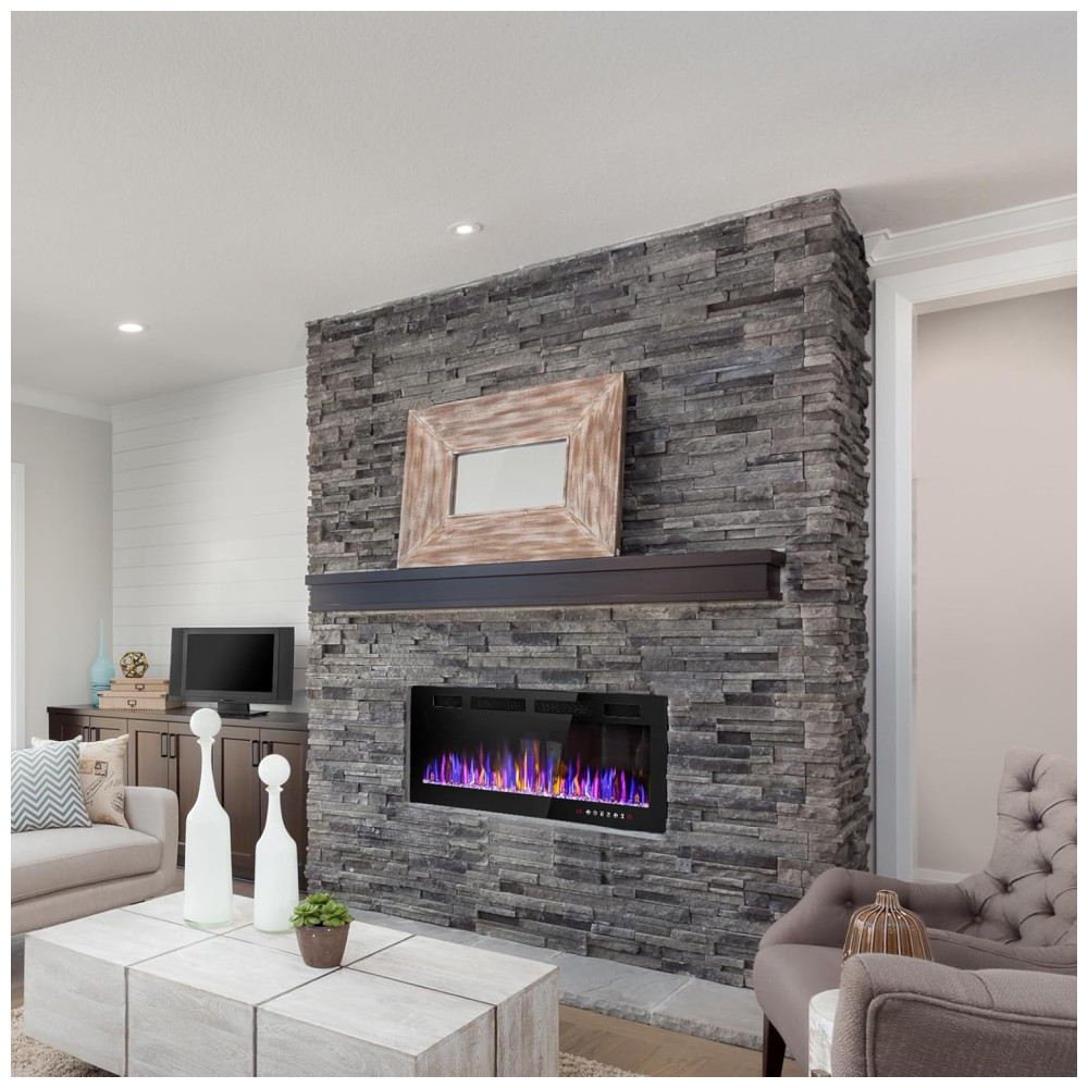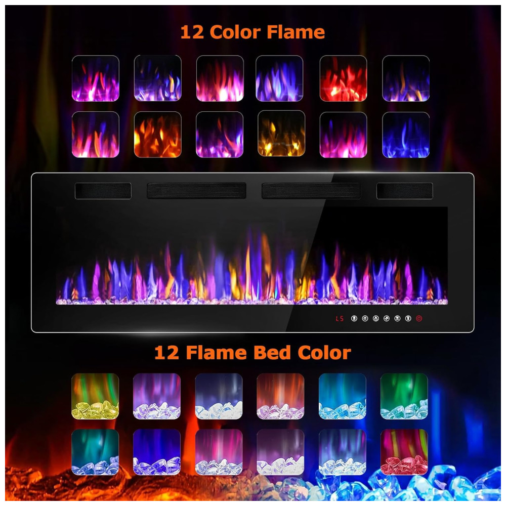 A Lareira Elétrica da VENDORZ apresenta um design ultrafino, com apenas 8,12 cm de espessura, 20% mais fina do que outros produtos, proporcionando uma experiência visual impressionante. Com um elegante frame escuro que destaca as chamas únicas, cria um display de fogo realista. Fabricada com painel frontal de vidro temperado resistente a altas temperaturas, oferece segurança e durabilidade. Certificada pela ETL, conta com funções de proteção contra superaquecimento, garantindo conforto e segurança. Com opções de 12 cores de chamas, 12 cores de cristais, 5 velocidades de chama e brilho ajustável, você pode criar a atmosfera ideal para qualquer estilo de ambiente, seja moderno ou rústico. Fácil de operar com controle remoto e painel de botões, permite controlar todas as funções, incluindo timer de 18 horas, cores de chamas, brilho e velocidade. Com potência ajustável de 750W e 1500W, aquece espaços de até 37m². Além disso, pode funcionar sem emissão de calor. Instalação simples, podendo ser embutida na parede ou montada. Adicione beleza e calor à sua casa com facilidade!