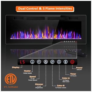 A Lareira Elétrica da VENDORZ apresenta um design ultrafino, com apenas 8,12 cm de espessura, 20% mais fina do que outros produtos, proporcionando uma experiência visual impressionante. Com um elegante frame escuro que destaca as chamas únicas, cria um display de fogo realista. Fabricada com painel frontal de vidro temperado resistente a altas temperaturas, oferece segurança e durabilidade. Certificada pela ETL, conta com funções de proteção contra superaquecimento, garantindo conforto e segurança. Com opções de 12 cores de chamas, 12 cores de cristais, 5 velocidades de chama e brilho ajustável, você pode criar a atmosfera ideal para qualquer estilo de ambiente, seja moderno ou rústico. Fácil de operar com controle remoto e painel de botões, permite controlar todas as funções, incluindo timer de 18 horas, cores de chamas, brilho e velocidade. Com potência ajustável de 750W e 1500W, aquece espaços de até 37m². Além disso, pode funcionar sem emissão de calor. Instalação simples, podendo ser embutida na parede ou montada. Adicione beleza e calor à sua casa com facilidade!