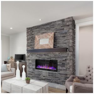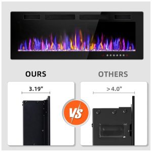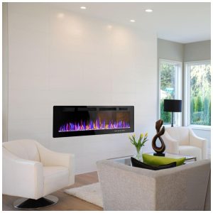 Lareira Elétrica de 127 Centímetros Embutida e de Parede Design Ultrafino com Controle Remoto Cores de Chamas e Brilho Ajustáveis Opções de Troncos e CristaisVendorz.