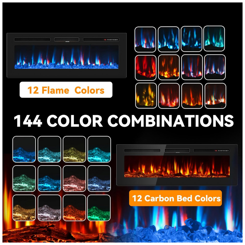 Aproveite uma temperatura máxima com esta lareira elétrica, perfeita para criar um ambiente acolhedor em sua casa ou espaço comercial. Com a opção de desligar o modo de aquecimento, você pode exibir apenas as chamas, criando uma atmosfera sofisticada. Além disso, a lareira possui uma trava de segurança para crianças e uma tela que permanece em uma temperatura segura. Com operação silenciosa de cerca de 40,0 dB e proteção contra superaquecimento, você pode desfrutar de seis níveis de brilho e velocidades de chama para atender às suas necessidades. Há também um modo de temporizador que dura até 12 horas e 144 combinações de cores possíveis para escolher, incluindo 12 cores de chama e 12 cores de leito de brasa. A lareira pode ser instalada como uma unidade embutida, parcialmente embutida ou montada na parede, economizando espaço no chão.
