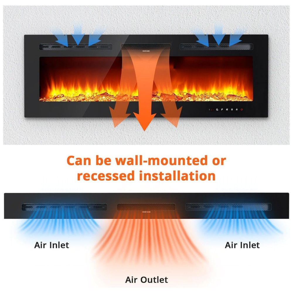 Lareira Elétrica de 152 cm Embutida ou de Parede Aquecedor 1500/750W (15-37°C) Tela Touch Controle Remoto Timer 12 Cores de ChamaAprafie