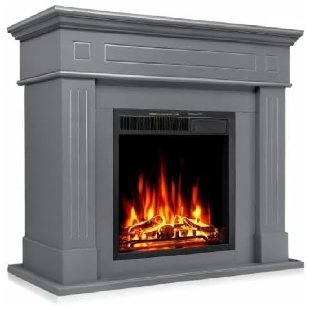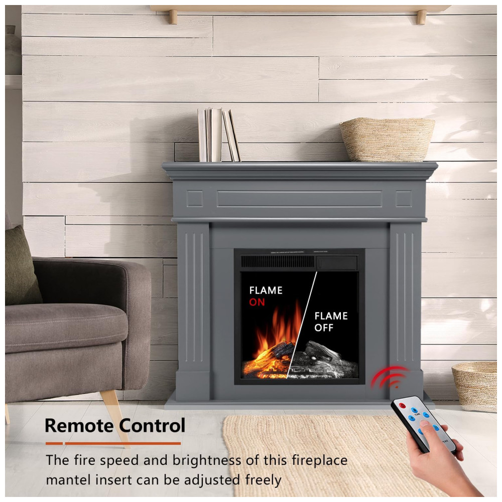 Lareira Elétrica de Embutir A100x109L cm com Suporte de TV Chama de LED Ajustável e Controle Remoto 110V 1500W R.W.FLAME Cinza