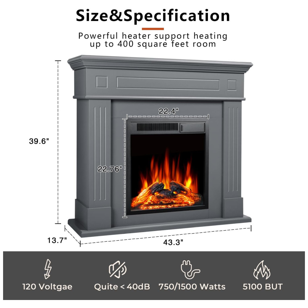 Dimensões da estrutura em geral: 110 cm (L) x 100,5 cm (A) x 34,8 cm (P), dimensões somente da lareira 56,58 cm de largura x 57,8 cm de altura. A lareira exibe chamas realistas que dançam, criando uma atmosfera aconchegante enquanto você aproveita o calor. Além de sua função decorativa, pode ser utilizada como aquecedor de ambiente autônomo.