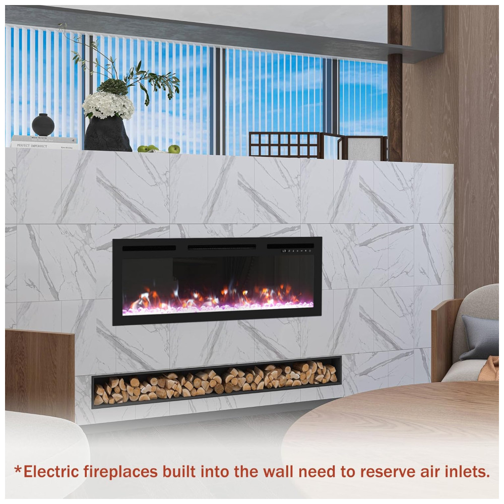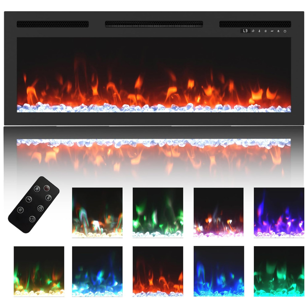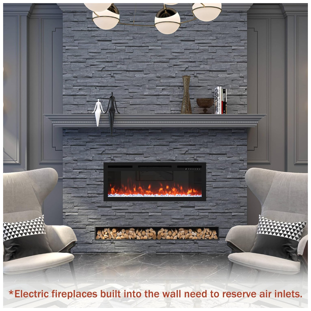 Lareira Elétrica de Embutir A35x91L cm com Baixo Ruído 11 Opções de Chamas Controle Remoto e Digital 110V 1500W MONDAWE Preta