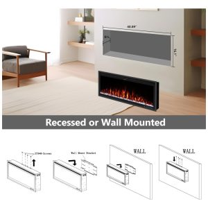 A lareira oferece chamas realistas e recursos avançados, incluindo 13 cores ajustáveis de chama, 13 cores de leito de combustível e 3 opções de luz superior, permitindo uma experiência visual personalizada com uma ampla gama de cores. O aquecedor possui um temporizador de 19 horas e proteção contra superaquecimento, operando em 120V com configurações de aquecimento de 750W e 1500W, adequadas para aquecer um espaço de até 400 pés quadrados.
