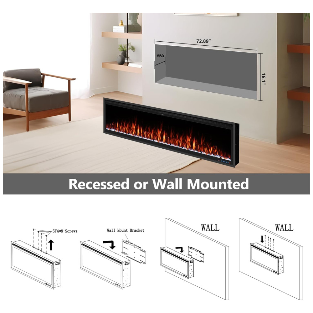 Ideal para a sala de estar, centro de entretenimento ou estantes de livros, a lareira proporciona segurança e conforto. O produto inclui um manual de instruções e oferece duas opções de instalação embutida na parede.