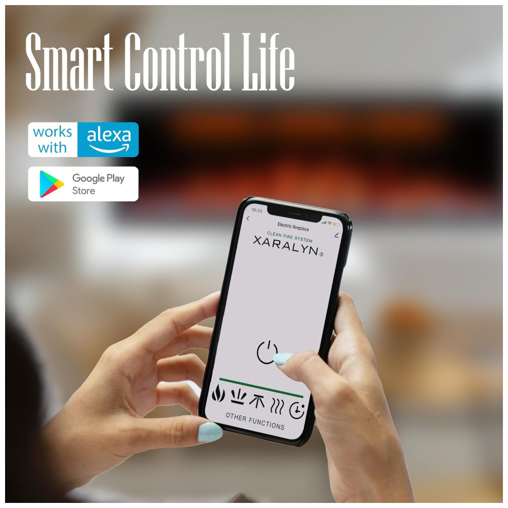 A lareira elétrica inteligente Benrocks pode ser facilmente controlada por controle remoto, tela sensível ao toque ou aplicativo. Para isso, basta baixar o aplicativo Xaralyn Smart em seu telefone. Cada função da lareira pode ser usada de forma independente, e as chamas 3D realistas apresentam 13 combinações de cores que simulam o movimento do fogo.