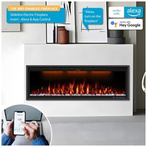 A lareira elétrica inteligente Benrocks pode ser facilmente controlada por controle remoto, tela sensível ao toque ou aplicativo. Para isso, basta baixar o aplicativo Xaralyn Smart em seu telefone. Cada função da lareira pode ser usada de forma independente, e as chamas 3D realistas apresentam 13 combinações de cores que simulam o movimento do fogo.