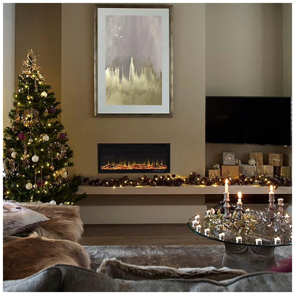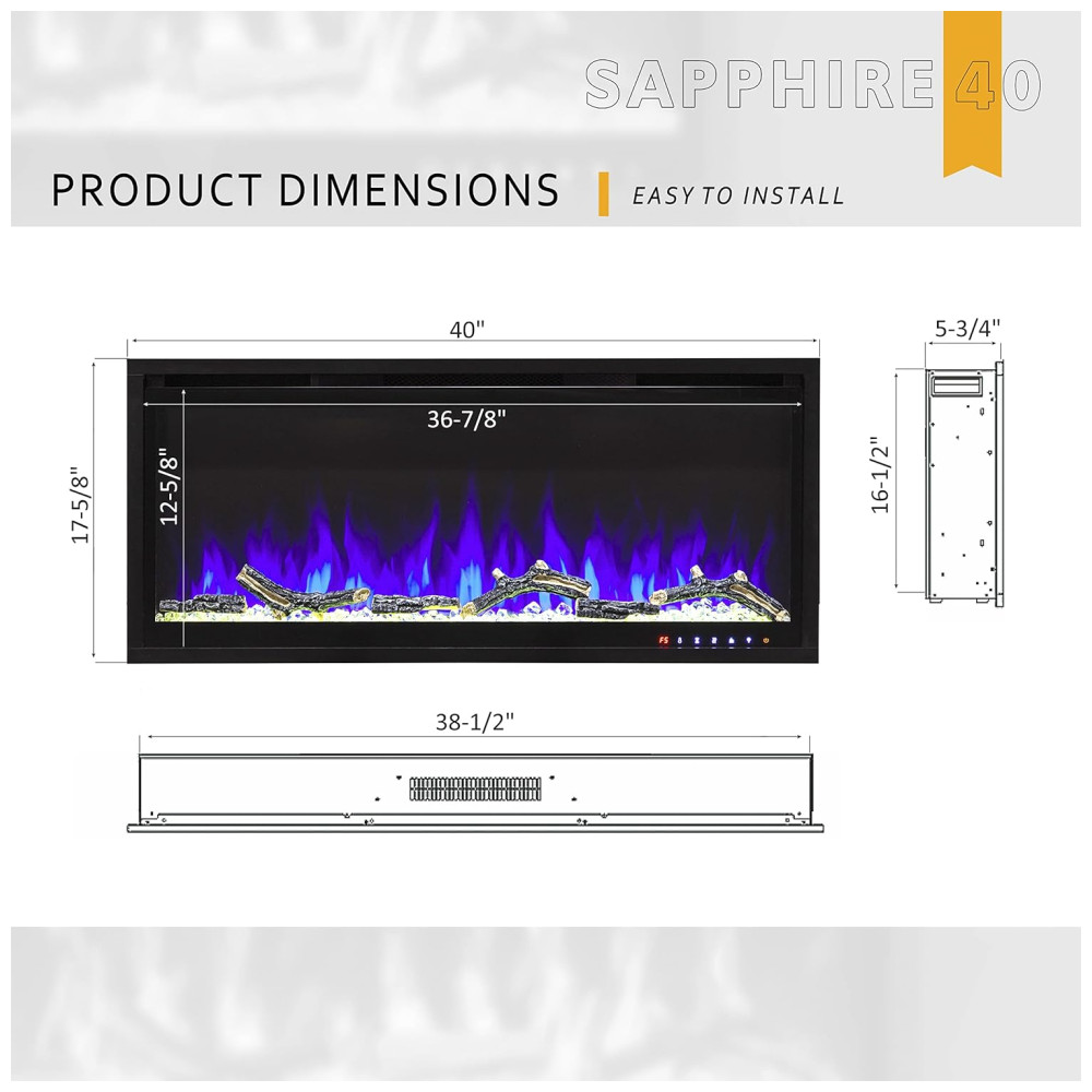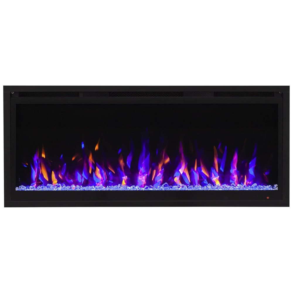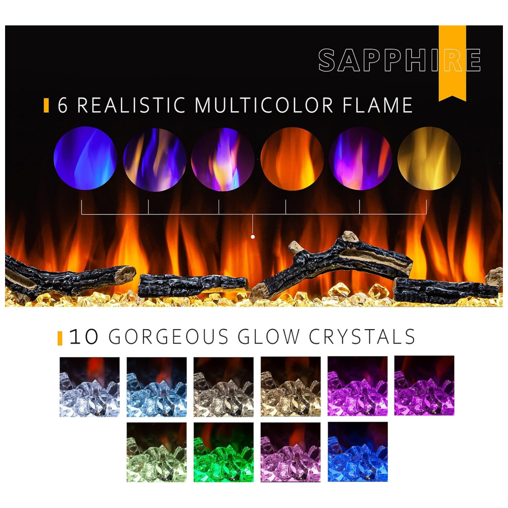 Lareira Elétrica de Embutir A43x101L cm com Chamas Multicoloridas Controle Remoto Conjunto de Toras de Fogo Falso e Cristais 110V 1500W FIREBLAZE Preta