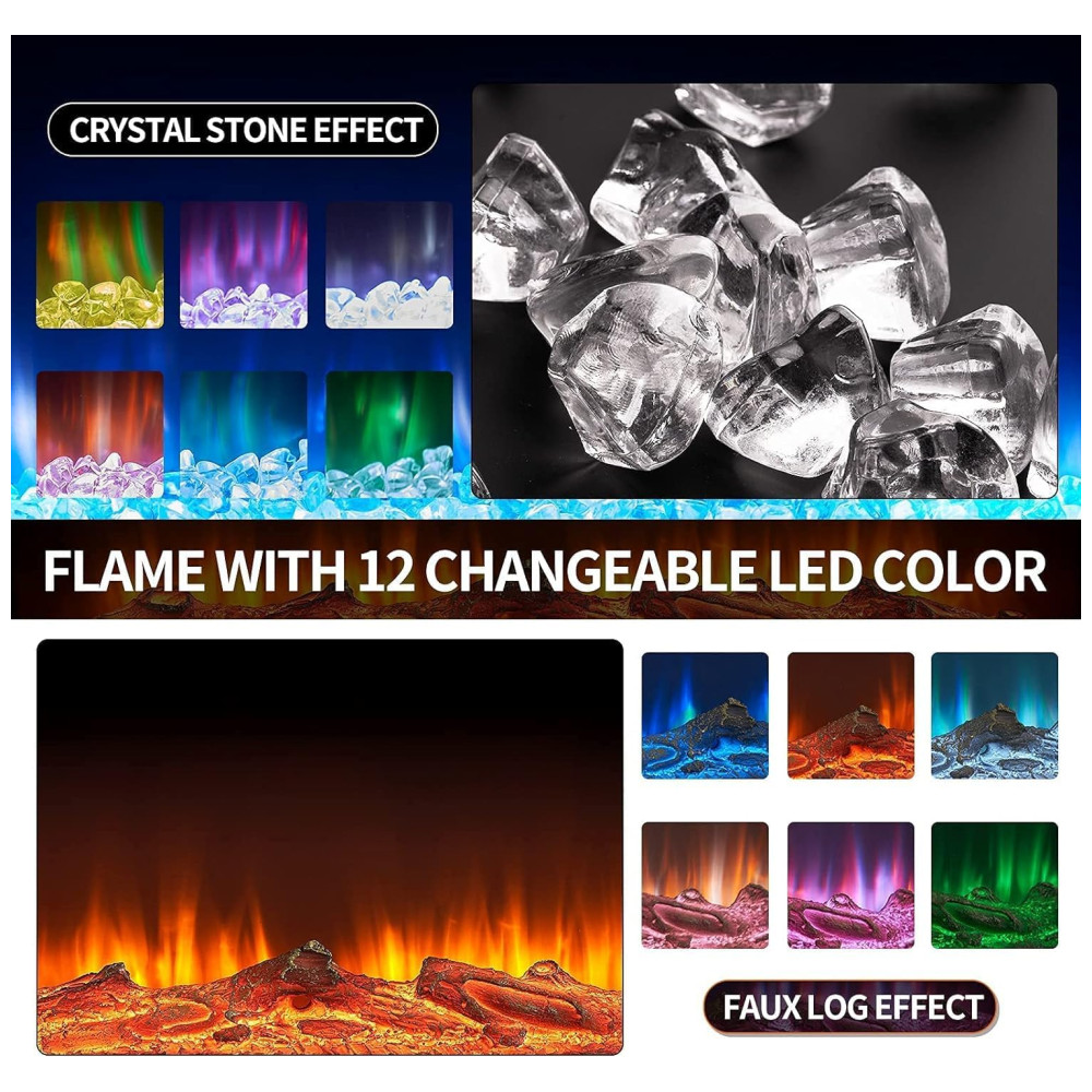 Possui modos de operação de luzes múltiplas, onde a luz da pedra de cristal e a luz da chama podem ser ajustadas separadamente para combinar com o ambiente desejado. A chama é criada através de uma tela sensível ao toque com 12 LEDs coloridos que podem ser ajustados através de controle remoto, permitindo operação com ou sem calor para o seu conforto durante todas as estações do ano. A potência de aquecimento pode ser ajustada entre 750 W e 1500 W, com controle de temperatura variando de 17°C a 28°C, oferecendo eficiência energética e aquecimento suplementar para áreas de até 37 metros quadrados.