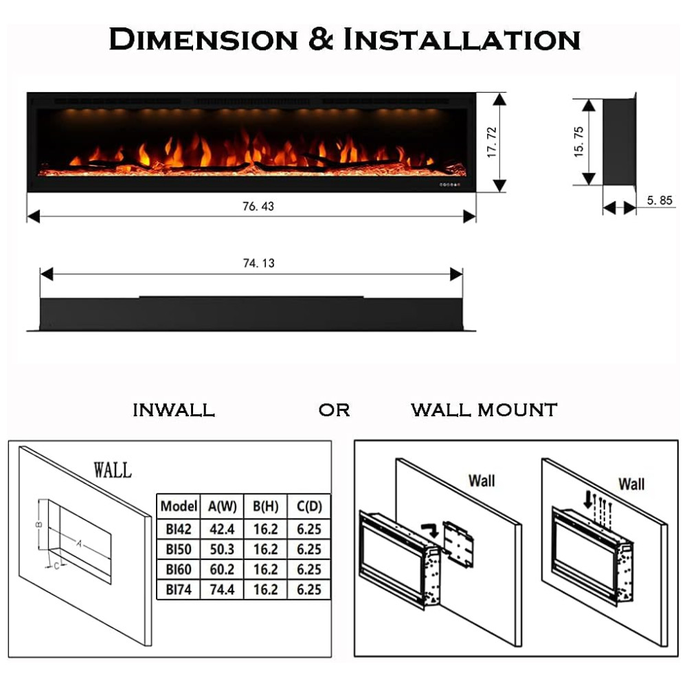CALOR ou SEM CALOR Ventilador do aquecedor frontal e lareira podem funcionar sem aquecedor para ser apenas uma decoração em qualquer época do ano. Os modos de aquecimento de 750 W, 1500 W podem ser ajustados de acordo para fins de aquecimento e ECONOMIA DE ENERGIA. O aquecimento da zona suplementar é de até 40 m2.