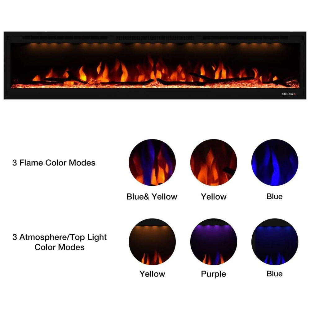 MODOS MULTI CHAMA design de luzes superiores de 3 cores 3 cores de chama e 3 cores de leito de combustível podem ser definidas de acordo com sua preferência. Equipado com tela sensível ao toque e controle remoto, que ajudam você a controlar este aquecedor de forma mais conveniente.