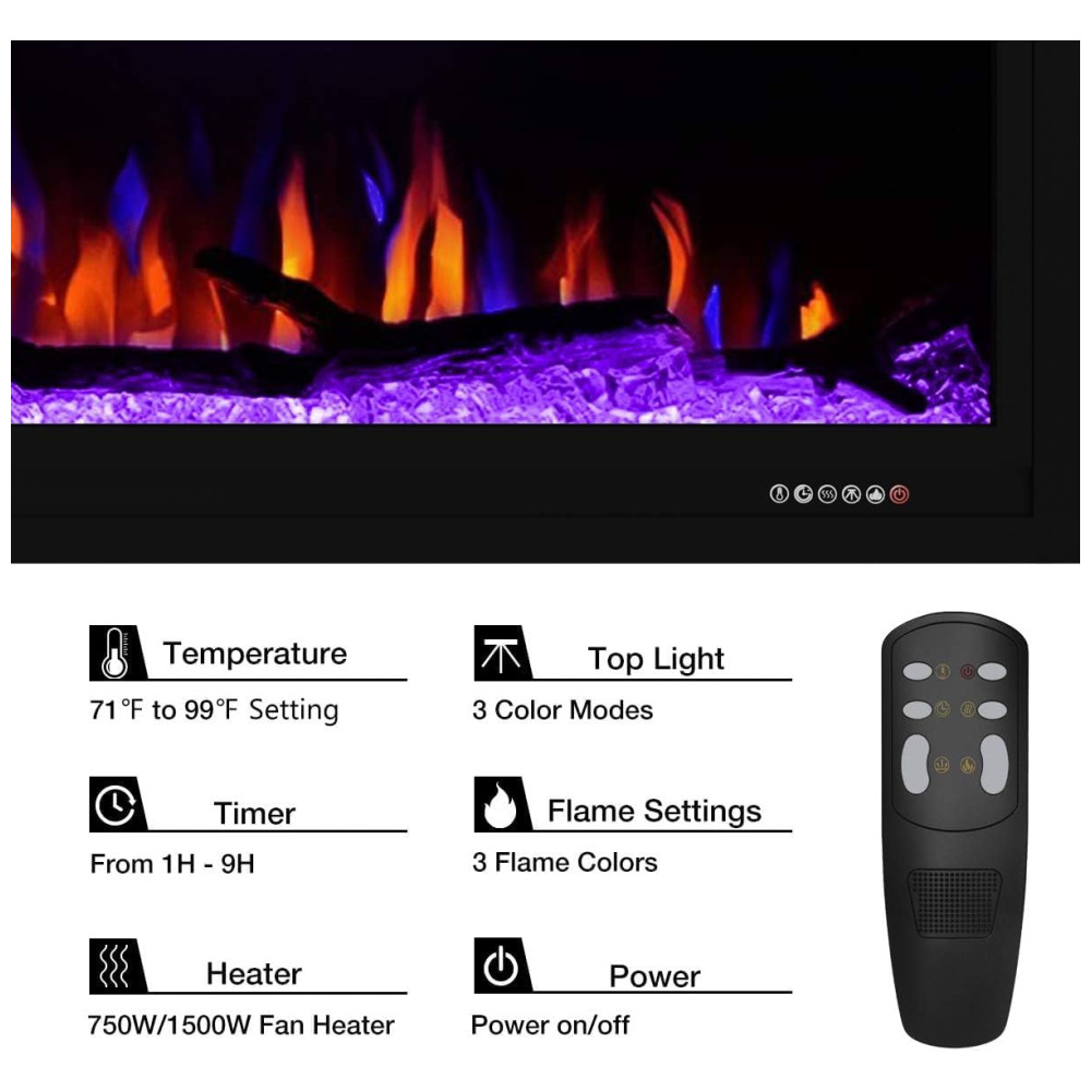 Com saída de ar frontal superior, esta lareira foi projetada para montagem na parede e instalação embutida, que pode fornecer aquecimento suplementar para uma sala de até 37 m2 5120 BTU cabo de alimentação de 6 pés 110 120V.