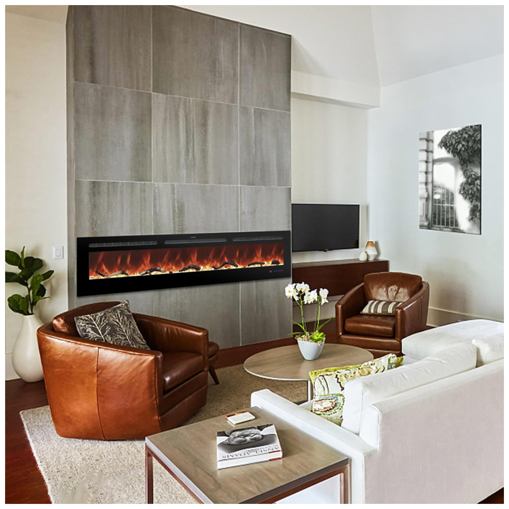 Temperatura e 2 configurações de aquecimento os modos de aquecimento de 750 W e 1500 W fornecem mais opções de acordo com a temperatura e a finalidade de economia de energia, a função de aquecimento pode ser desligada com chama decorativa e luz acesa. O sistema de controle de temperatura pode manter a temperatura ambiente. A lareira de parede é ótima para criar um ambiente aconchegante e com baixo ruído. Aviso A configuração de temperatura pode ser alterada entre F e C pressionando o botão por 10 segundos