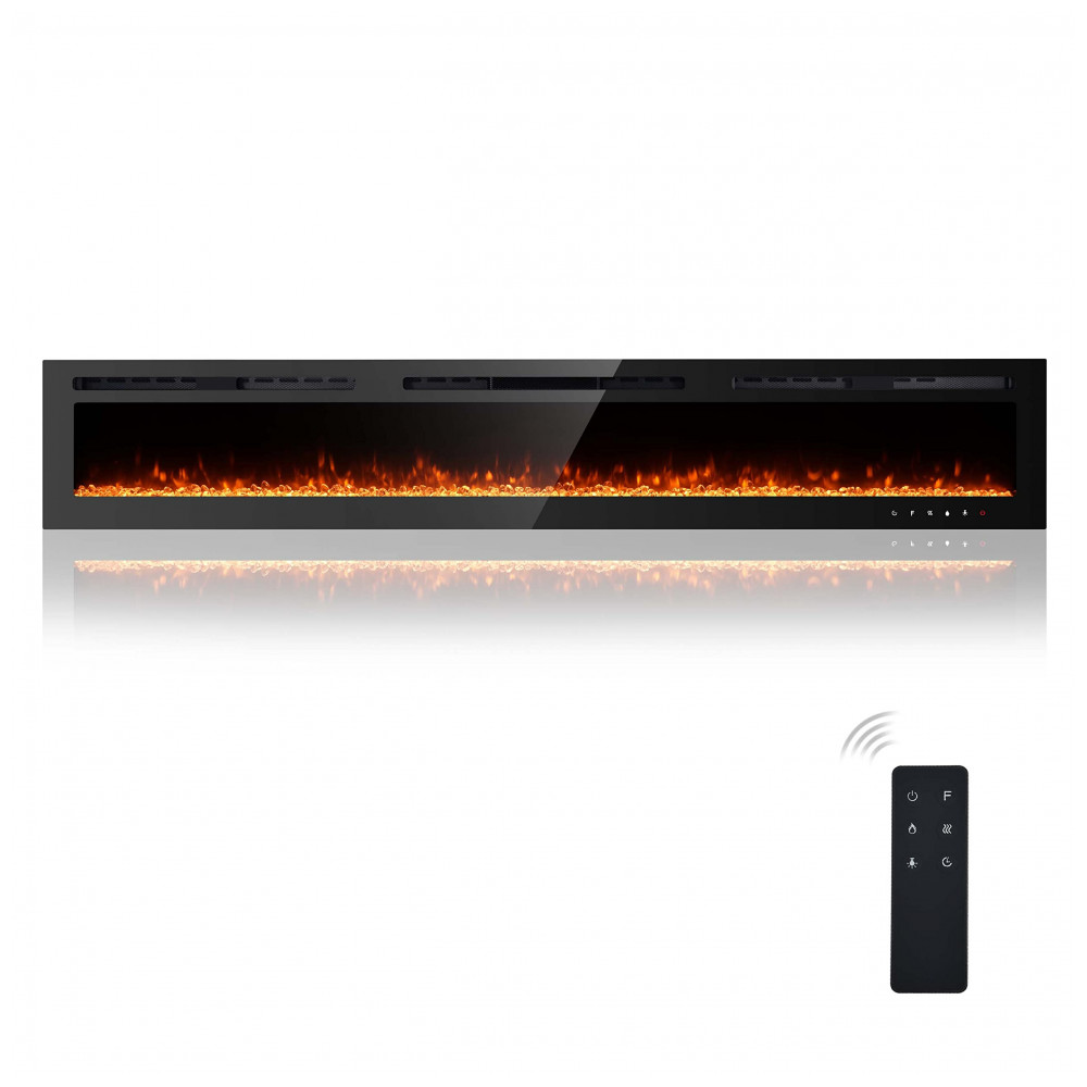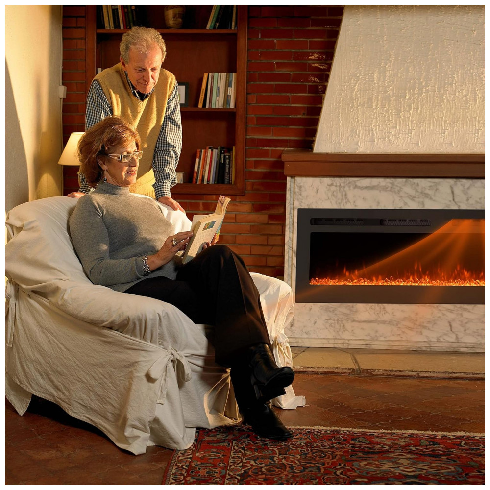 12 cores de chama de cristal esta lareira insere pedras de cristal com 12 configurações de cores de chama diferentes para atender às suas diferentes preferências. Luzes LED de alta intensidade fornecem efeito de chama brilhante e realista. O efeito chama pode ser operado com ou sem calor durante todo o ano. 5 intensidades de cor para controlar o brilho de claro a escuro.