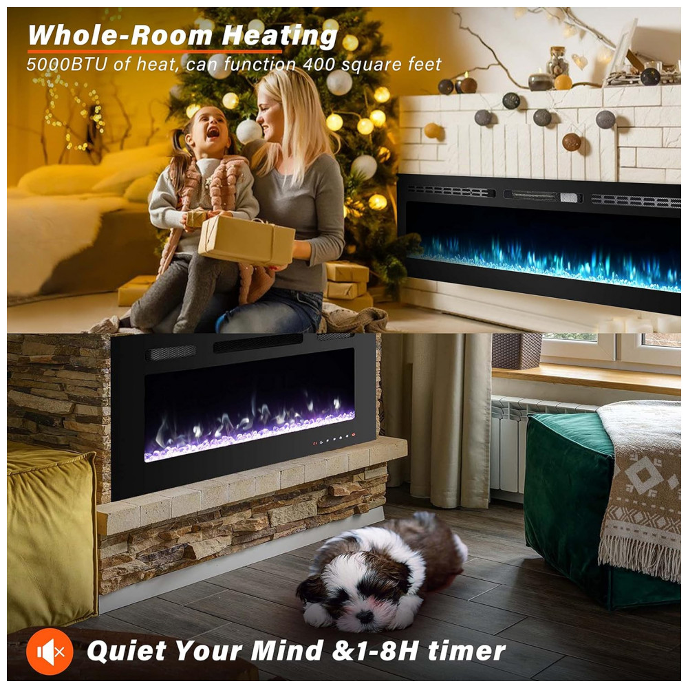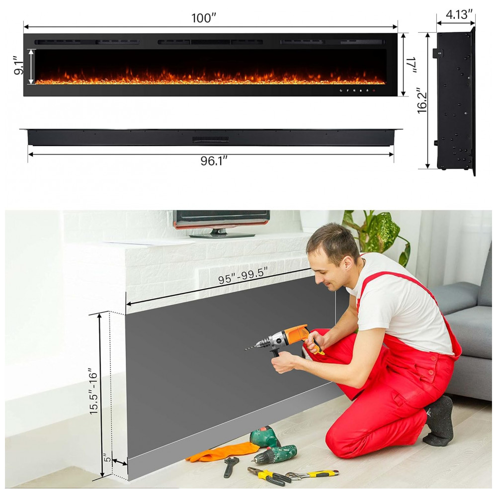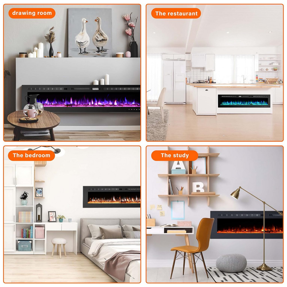 Instalação embutida e montada na parede As inserções de lareira elétrica Homajor não só podem ser embutidas ou semi rebaixadas na parede, mas também podem ser montadas na parede, escolha qualquer estilo que você preferir, rápido e fácil de instalar e desinstalar com os parafusos e instruções incluídos.