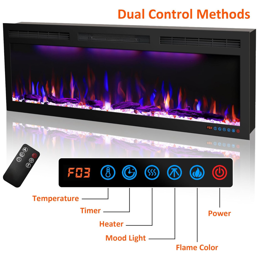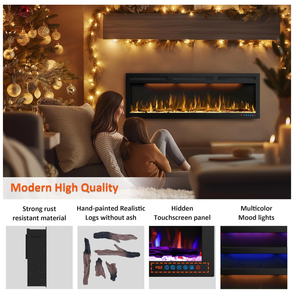 Esta lareira elétrica linear possui uma estrutura sólida preta e uma moldura ultra-estreita nos lados esquerdo/direito, oferecendo uma tela maior para exibir a chama maravilhosa. A tela sensível ao toque no painel de vidro temperado frontal adiciona um toque de luxo e evita danos acidentais.