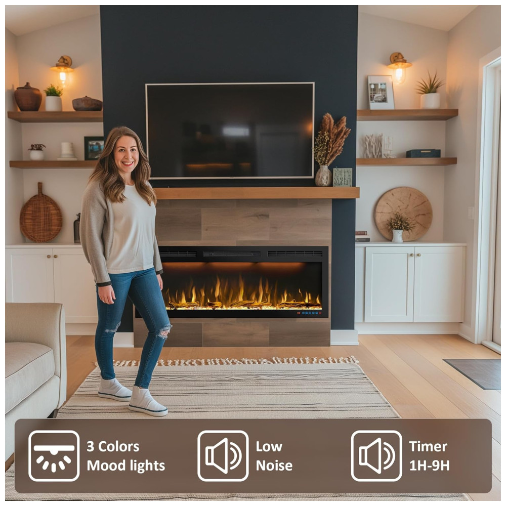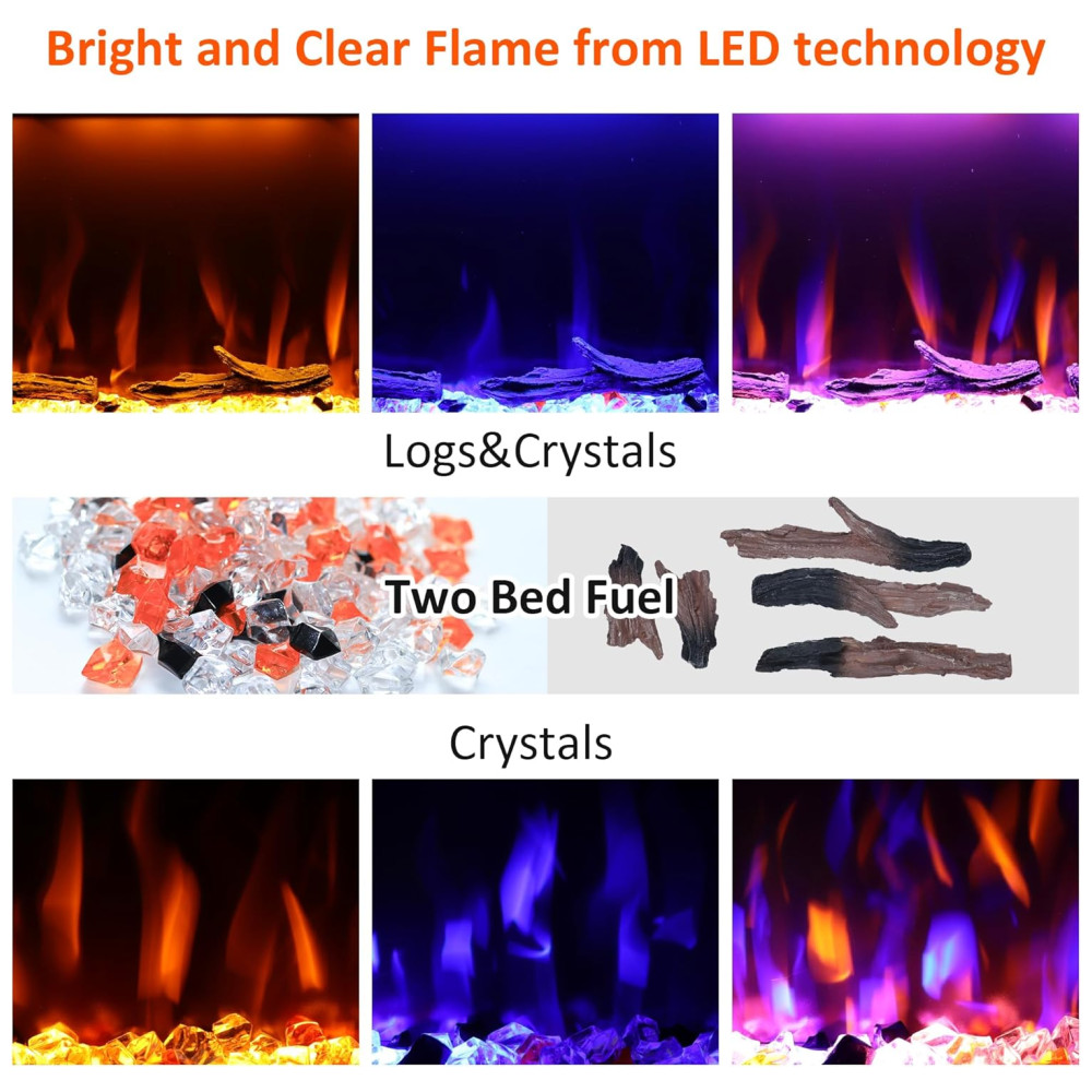 Esta lareira elétrica de parede pode alterar as cores conforme seu humor ou a atmosfera da casa, como Halloween, Natal, etc. Dois modos de aquecimento de 750W e 1500W podem ser ajustados para aquecimento e economia de energia. Você também pode configurar o termostato, variando de 22°C a 37°C. Claro, esta lareira pode ser utilizada com ou sem aquecimento e se conecta a uma tomada padrão de 110V.
