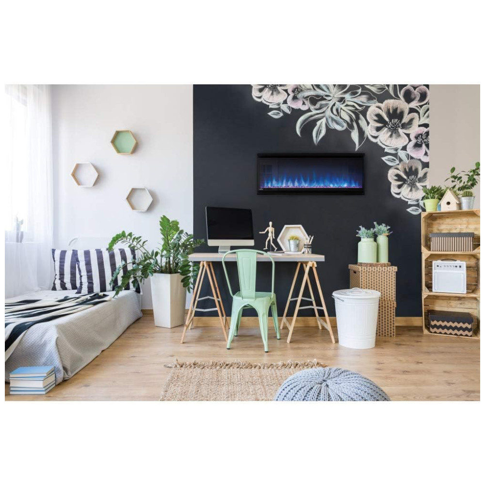 Ajuste de Cor, Brilho e Velocidade da Chama: Cada vez que você experimentar esta lareira, a experiência pode ser diferente. Ajuste o brilho das chamas através de quatro configurações e opções de cor, incluindo azul frio e convidativo, amarelo quente e ensolarado, laranja tradicional e vibrante, ou uma bela combinação de todas elas, enquanto ajusta a velocidade da chama para garantir que seu espaço seja aperfeiçoado pelo brilho quente da sua lareira ideal.