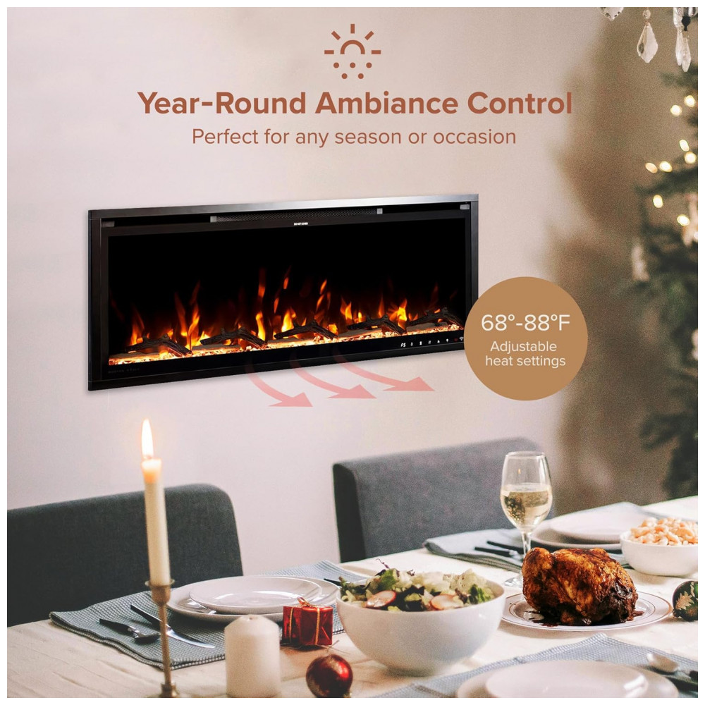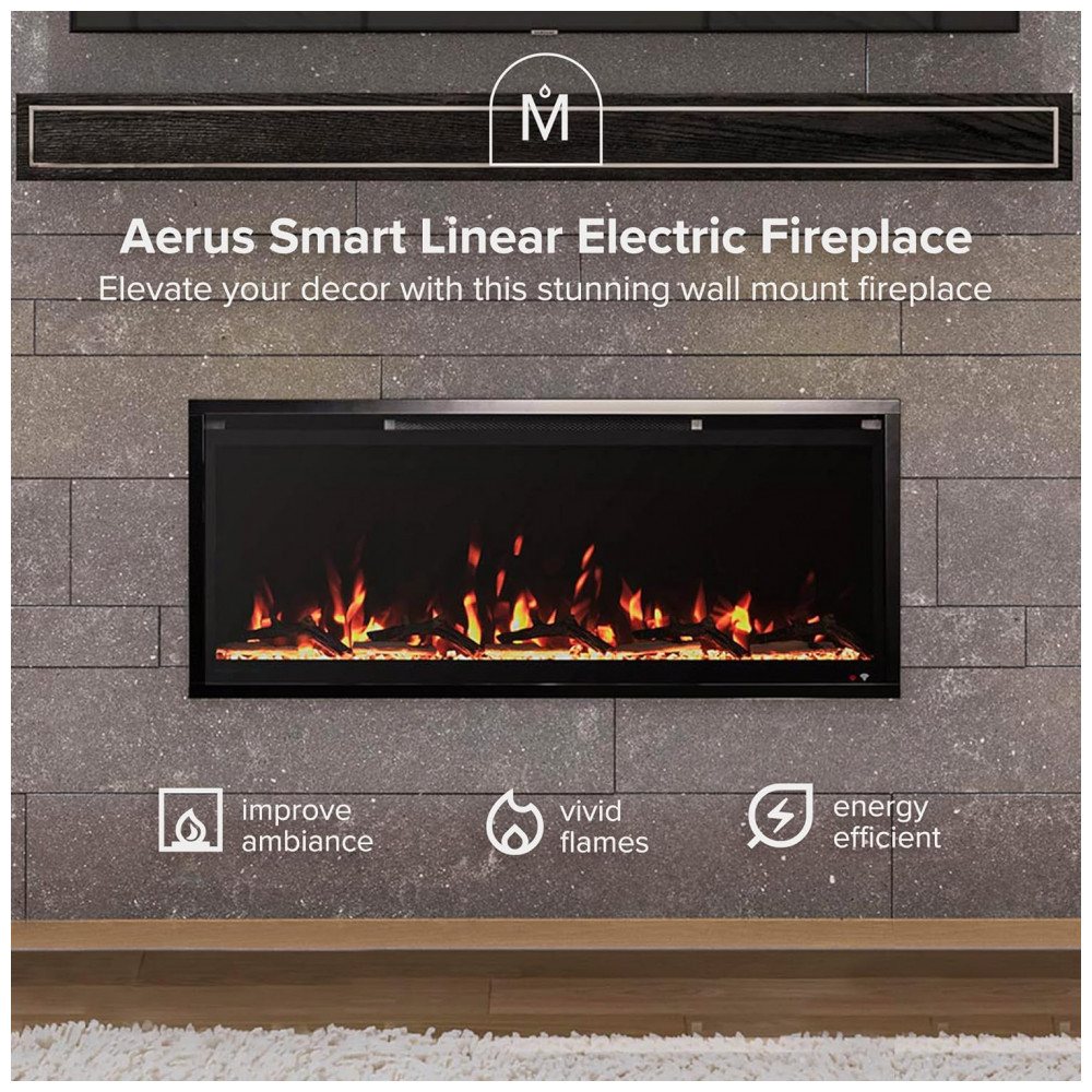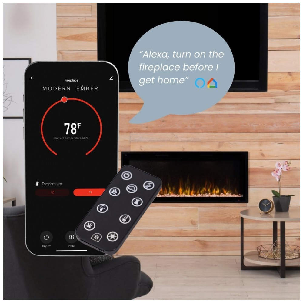 A Lareira Elétrica Inteligente Linear Modern Ember Aerus de 106,68 cm oferece versatilidade e sofisticação para qualquer ambiente, proporcionando um controle fácil e personalização para criar a atmosfera perfeita em sua casa.