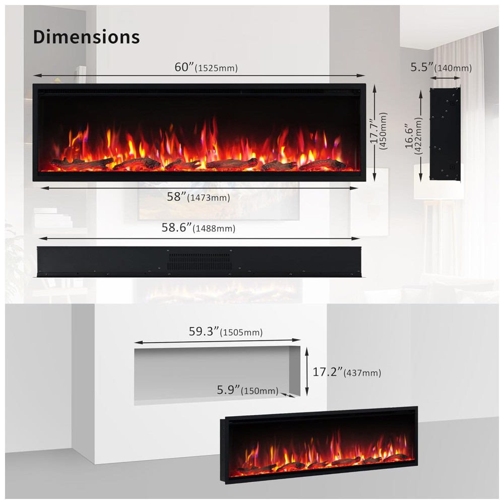 Segurança e flexibilidade de instalação: Esta lareira é segura para instalação de TVs acima dela. Além disso, você pode optar por conectá-la a uma tomada de 120 V ou fazer a fiação fixa, oferecendo mais flexibilidade na instalação.