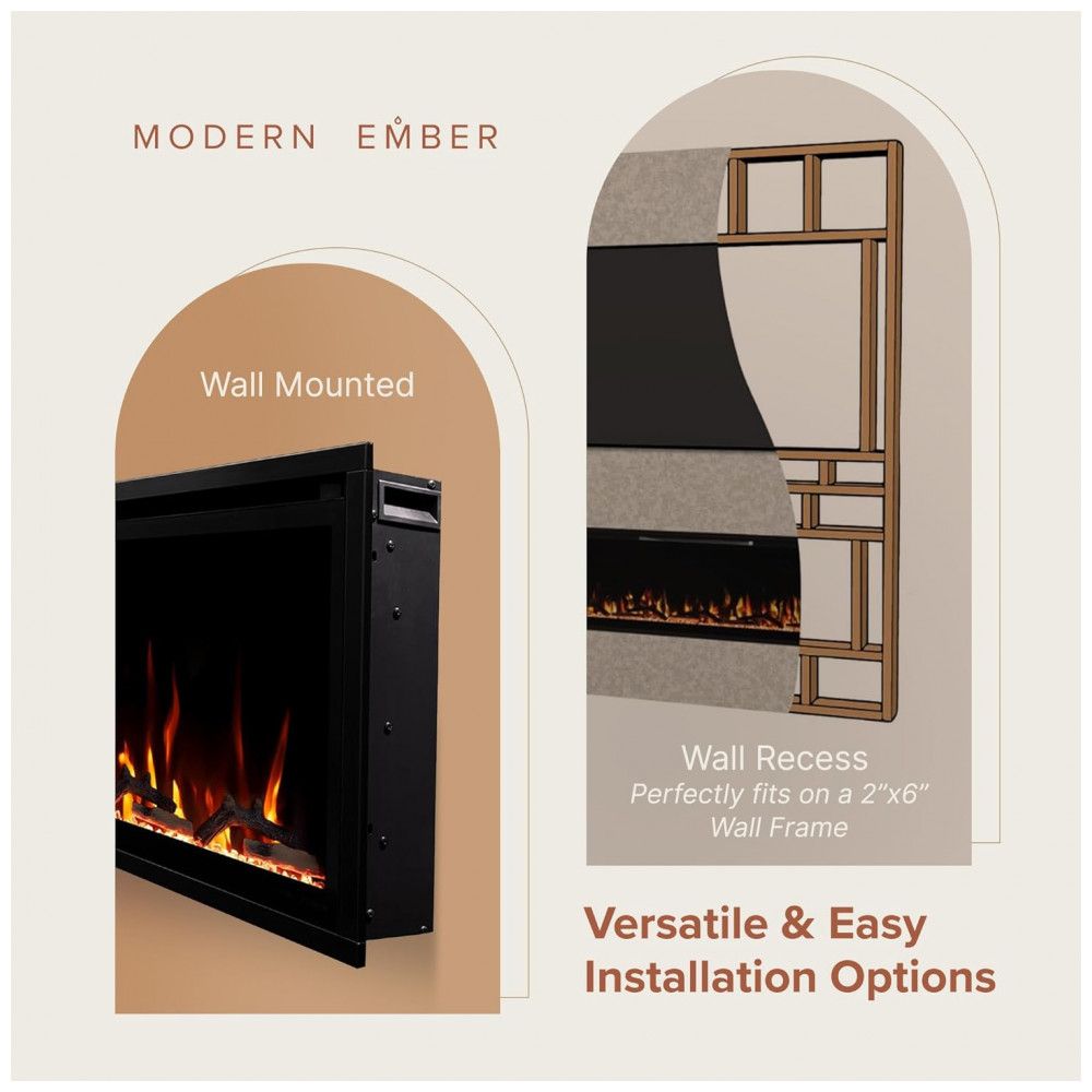 A lareira elétrica linear Aerus de 152,4 cm pode ser montada diretamente na parede ou embutida em uma parede ou moldura para um visual perfeito.