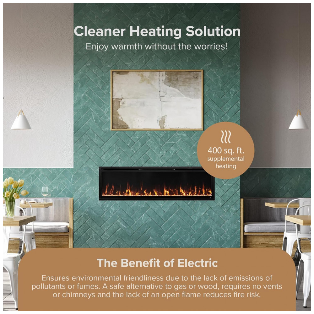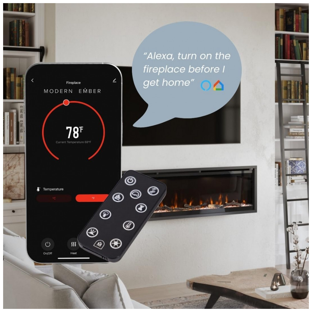 A Lareira Elétrica Inteligente Linear Modern Ember Aerus de 152,4 cm oferece versatilidade e sofisticação para qualquer ambiente, proporcionando um controle fácil e personalização para criar a atmosfera perfeita em sua casa.