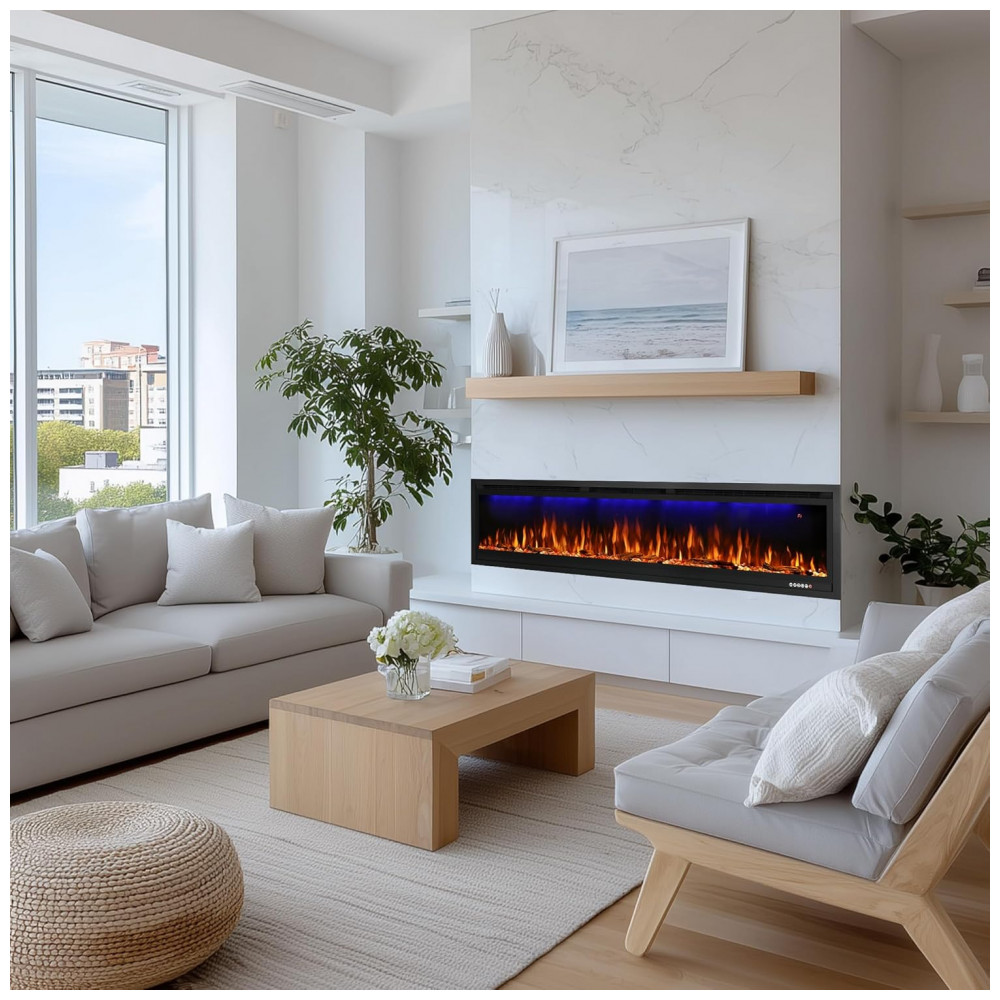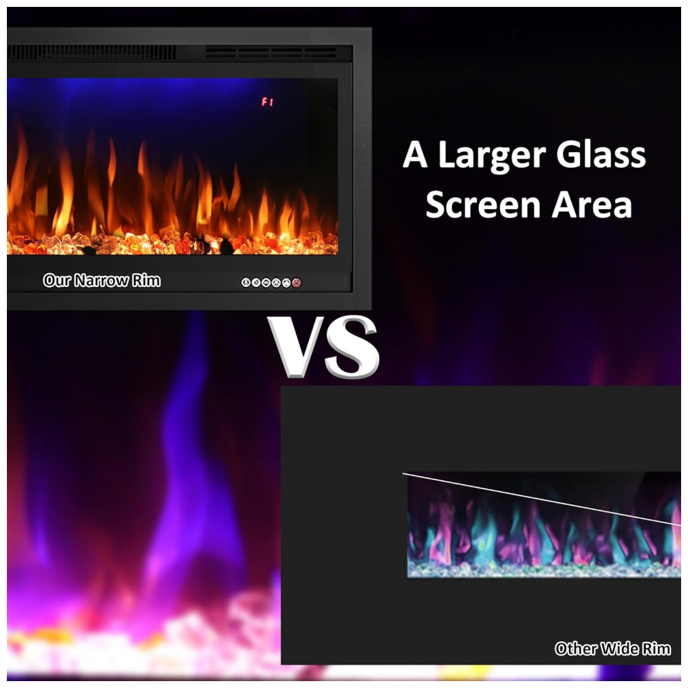 Área de Visualização Maior: A borda de metal ao redor desta lareira elétrica embutida é mais estreita em comparação com outras lareiras, criando uma área de visualização maior para as chamas e o leito de combustível, permitindo que você aproveite as chamas dançantes e a atmosfera aconchegante. A lareira elétrica embutida não só proporciona calor, mas também adiciona elegância, conforto e versatilidade à sua casa.