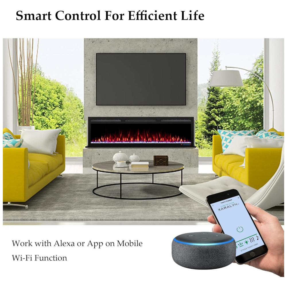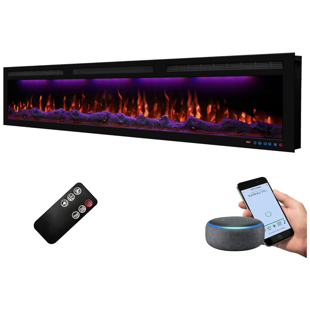 Lareira Elétrica de Embutir A44x182L com Controle por APP e Chamas Multicoloridas 110V 1500W Dreamflame Preta