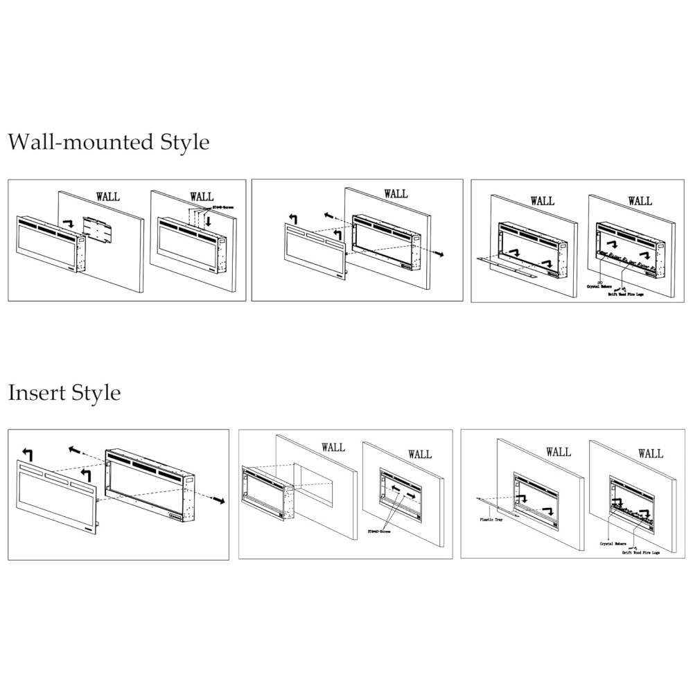 Fácil instalação Rebaixado na parede ou montado na parede, ambos podem ser escolhidos como requisitos. Não é necessária muita montagem ao instalar esta lareira, quase dois adultos podem concluí la em pouco tempo. Informações detalhadas no Manual do Usuário.