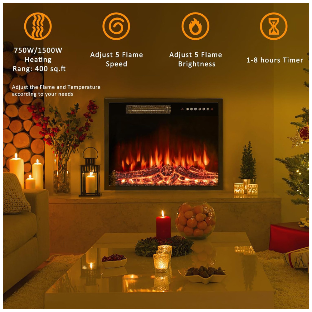 Adicione um toque de elegância e conforto ao seu espaço com a lareira elétrica de 23 polegadas, proporcionando uma atmosfera acolhedora e moderna.