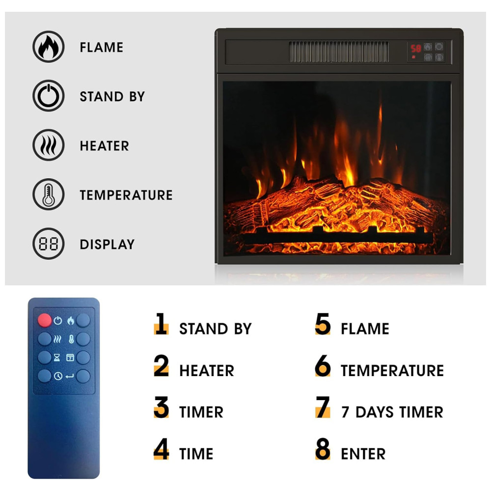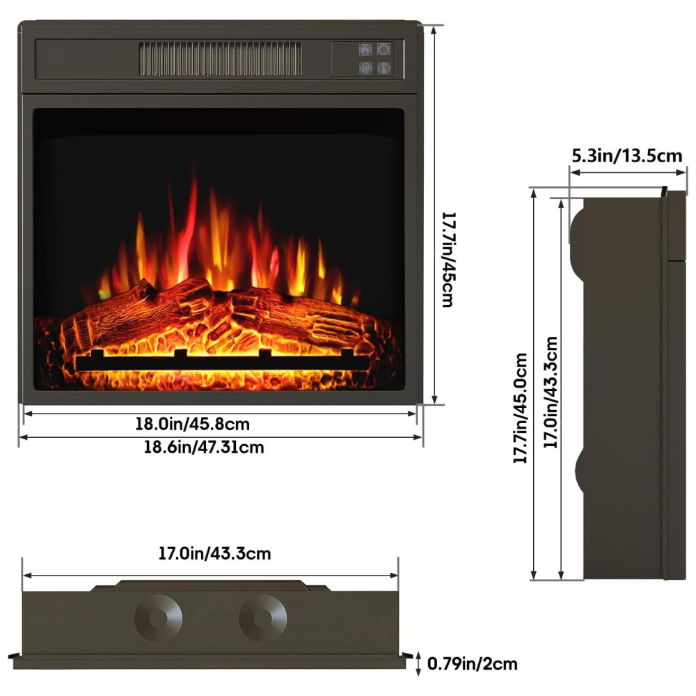 Lareira Elétrica de Embutir A44x59L cm com Brilho de Chama Ajustável Baixo Ruído Temporizador Controle Remoto e Digital 110V 1400W Vabches Preta