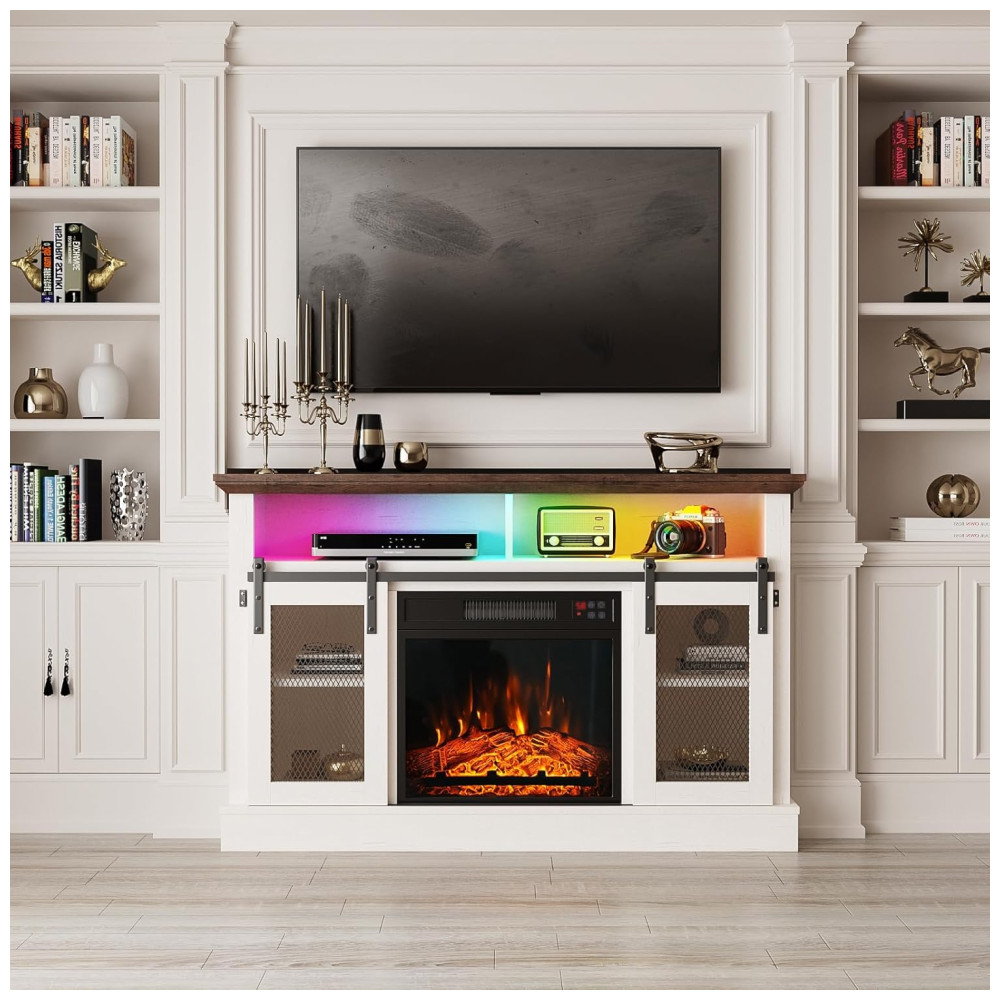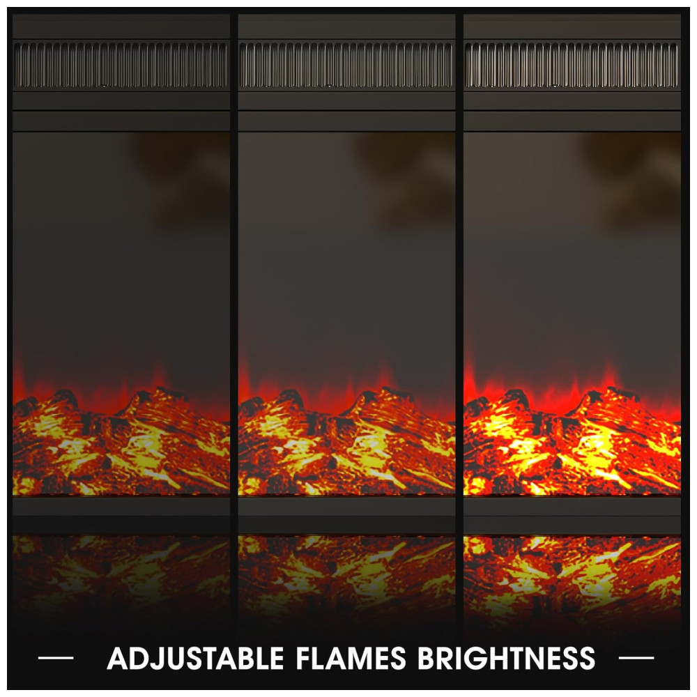 A lareira apresenta chamas realistas e um efeito de toras queimando, criando um charme especial para o ambiente. Equipado com tecnologia LED e chama 3D, oferece um efeito visual hipnotizante e autêntico.