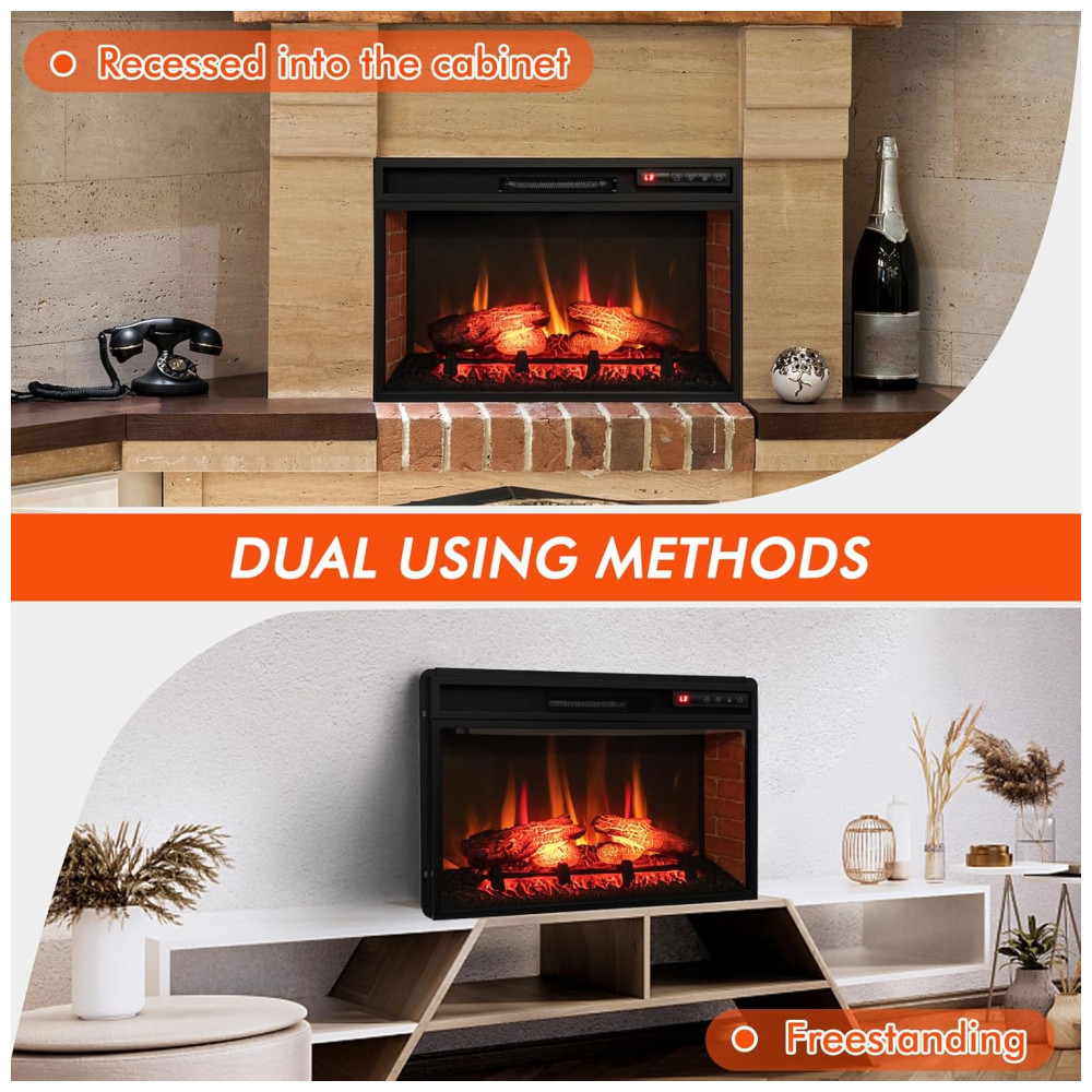 Métodos de Uso Duplos: O aquecedor de lareira independente pode ser colocado em um suporte ou embutido no gabinete para economizar espaço. Mantenha 5 cm entre a entrada de ar e a parede. Além disso, você pode desfrutar da chama e do calor ou apenas da chama conforme desejar.