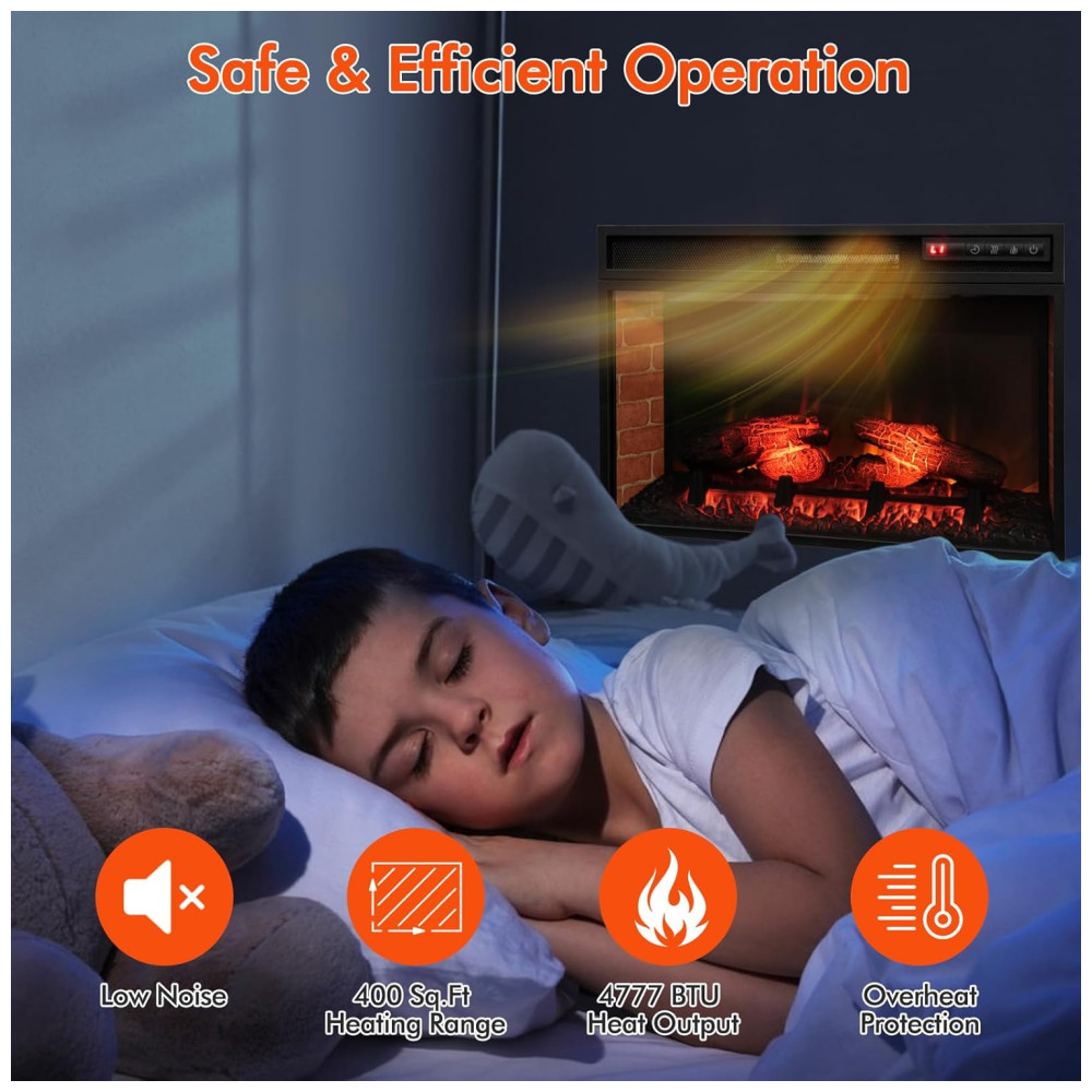 Operação Segura e Eficiente: A lareira possui certificação CSA e proteção contra superaquecimento para uso confiável. Além disso, o baixo ruído garante um ambiente ideal para trabalho e sono. Você pode pressionar e segurar o botão de controle do aquecedor por 10 segundos para bloquear ou desbloquear a função de aquecimento.