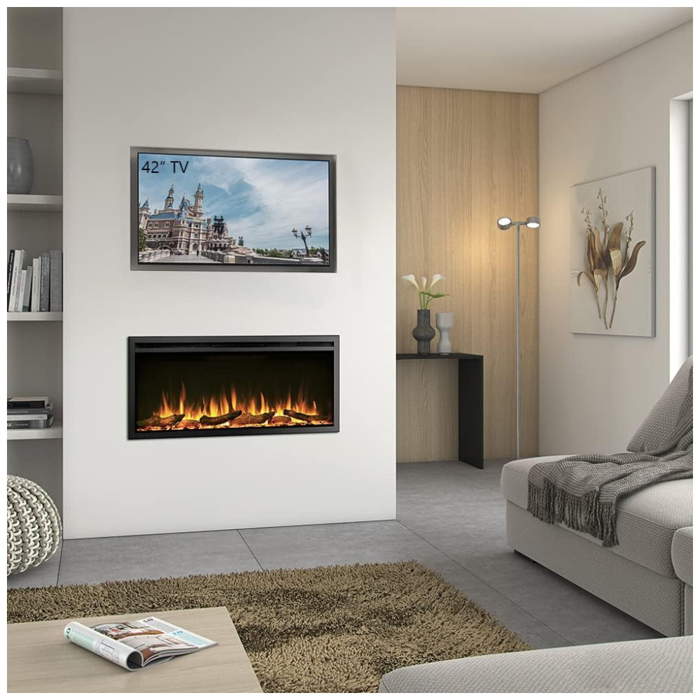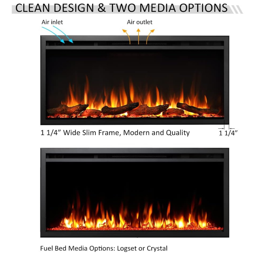 MULTI COMBINAÇÕES DE CHAMA A chama moderna e realista cria uma sensação de chama realista Incluindo as duas opções de leito de combustível conjunto de toras e pedra de cristal. Chama multicolorida e cama de combustível em 5 configurações de brilho, sons crepitantes para se adequar aos seus diferentes humores alegres ou pacíficos em diferentes ocasiões. O efeito chama e crepitação pode ser com ou sem calor.